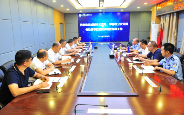 2023年9月14日,成都市公安局高校管理科科长钟良、郫都区政保大队副大队长尹黎、安德派出所副所长张坤民一行到伟德国际检查指导安全稳定工作。纪委书记池秋平会见了钟科长一行并主持召开了座谈交流会。