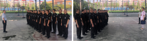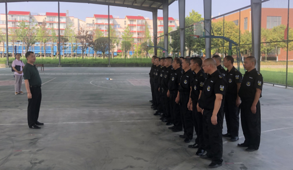 在培训环节中,徐小平和罗教官讲解了保安礼仪、巡逻与列队、保安日常行为规范等内容,重点讲解了校园遭遇暴恐袭击时应注意的事项及如何加强校园防暴应急处置、如何做好自身安全防护及如何控制施暴人员等措施。