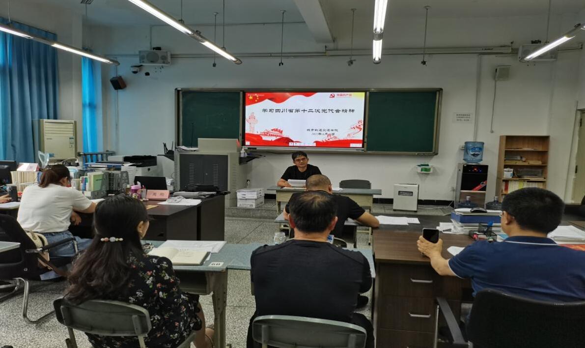 6月13日,城市轨道交通学院组织全体教职工学习贯彻四川省第十二次党代会精神。会议由学院党总支书记王文杰主持。