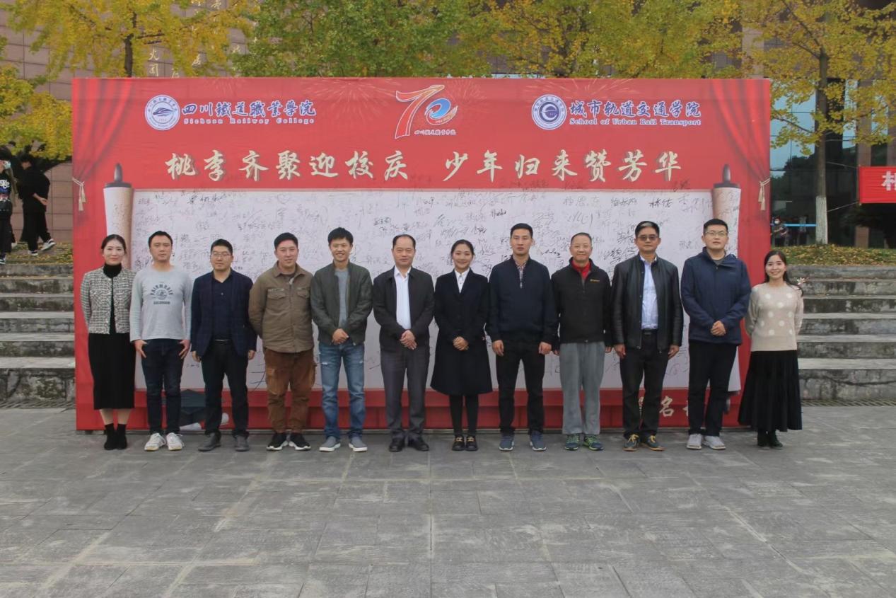 学校党委副书记刘昊君与返校校友、城轨学院党政负责人、教师共同合影留念。校友们纷纷表示很幸运能够在母校70周年校庆之际留下属于自己的足迹,感恩母校对自己多年的培养,祝福母校永远风华正茂,永远蓬勃向上,再创辉煌! 五、“弦歌七秩共筑梦,相聚母校庆芳华”庆祝活动