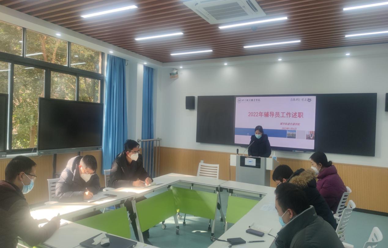 根据《伟德国际英国辅导员考核实施细则》,为进一步加强辅导员队伍建设,2023年1月6日于1207召开城市轨道交通学院2022年度辅导员年度考核述职报告会。会议由城市轨道交通学院党总支书记王文杰主持,学院院长杨凤、学院教研室主任杜亚林、学院办公室主任郭尧鹏、学院全体专职辅导员老师参加。