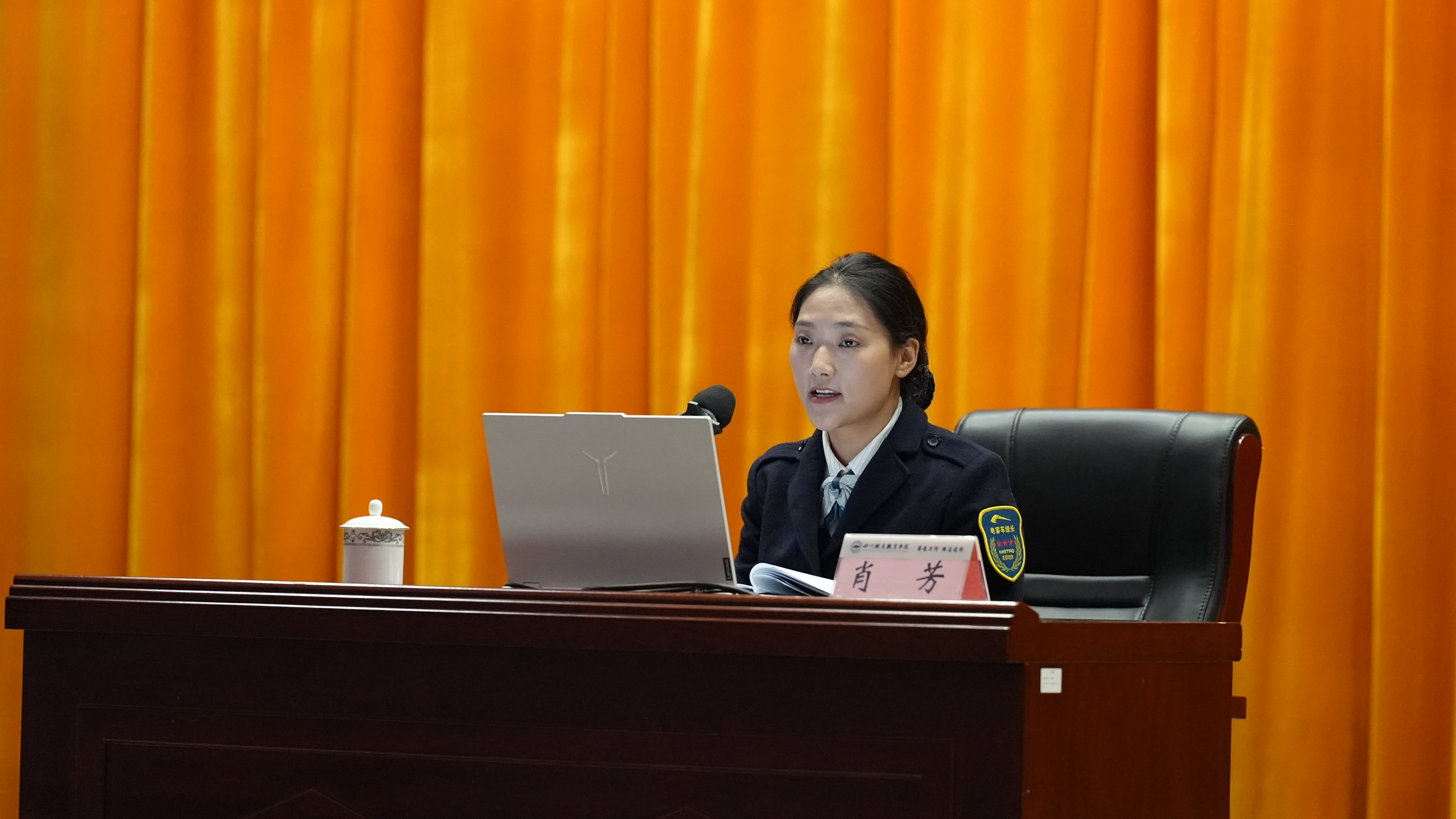 互动环节气氛热烈。面对突发情况应对之问,她以暴雨天轨道异物处置为例,分享“停稳—汇报—处置”三步法,强调应急预案须“刻进脑海”;针对新生能力培养困惑,她建议从“较真”态度、实操能力、沟通协作和体能四方面发力,鼓励多进模拟驾驶室锤炼技能;谈及从业挑战,她坦言靠苦练将停车精度控制在厘米级,“以专业立身,用细致闪光”,赢得全场掌声。