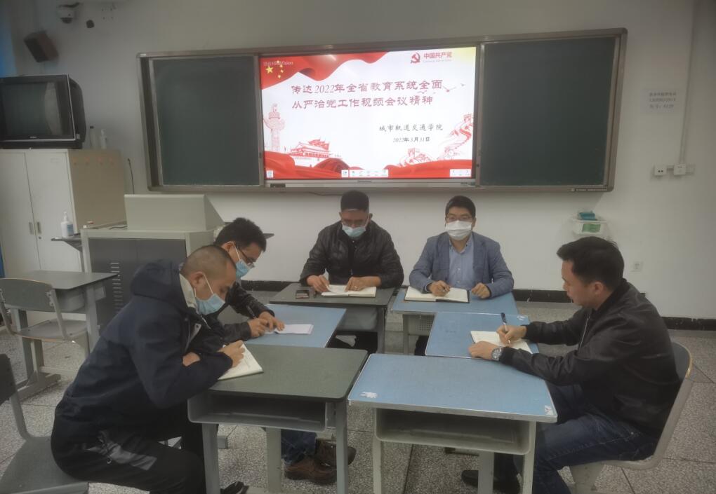 2022年3月31下午5时30分,我院组织党总支委全体成员召开会议,学习传达2022年全省教育系统全面从严治党工作视频会议的精神,会议由党总支书记王文杰同志主持。