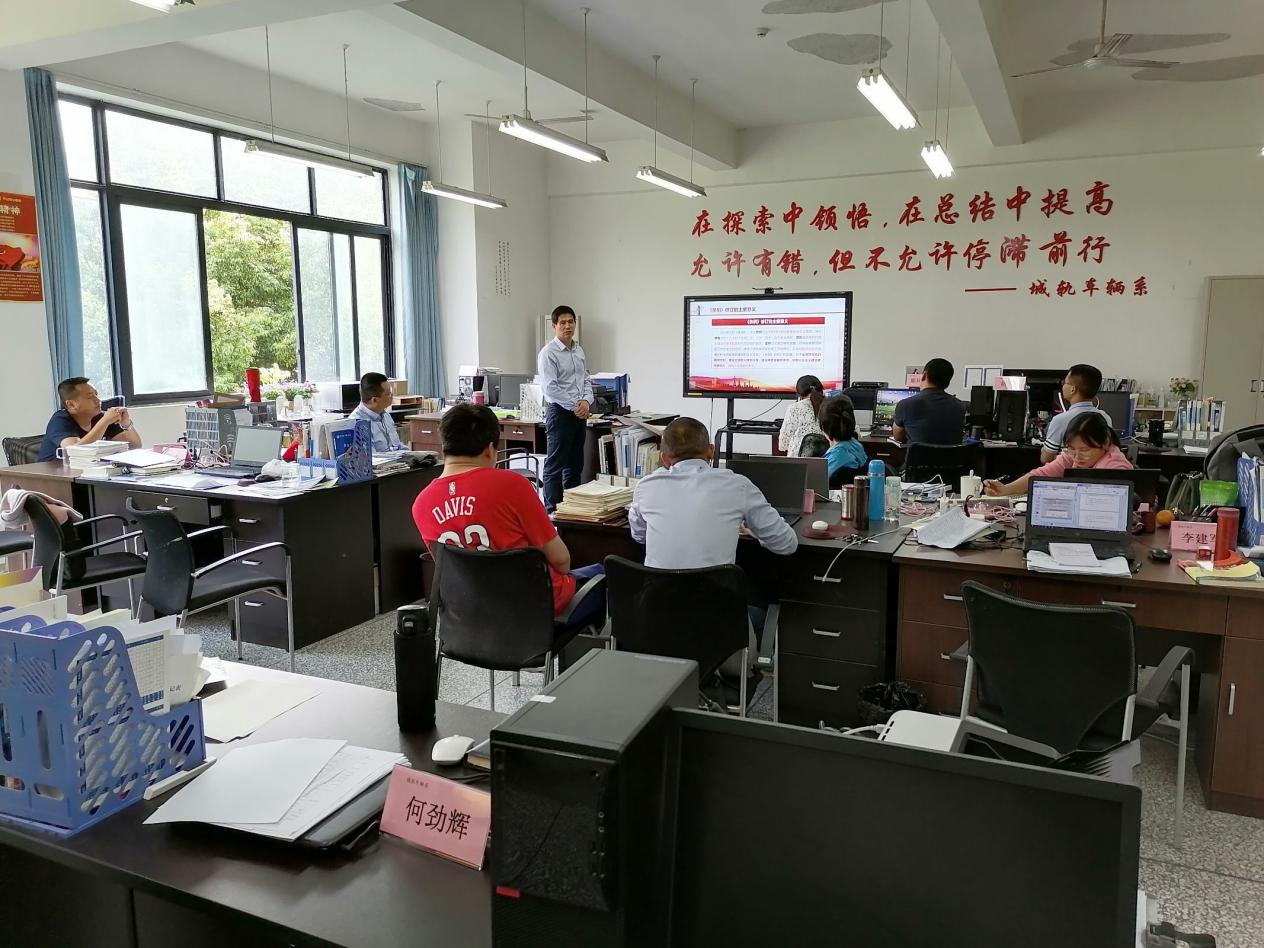 2021年5月24日下午,城轨车辆系党总支在1315组织开展“坚定红色信仰,礼赞建党百年”系列活动之党史学习主题党日活动,全体教职工参与,本次活动由系党总支书记龙明贵主持。