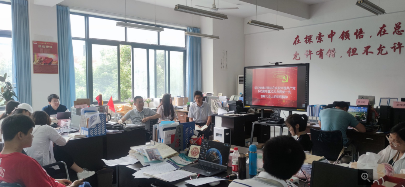 2021年7月5日下午,城轨车辆系党总支在1315办公室召开了政治理论学习会议,我系全体教职工共16人参加,系党总支书记龙明贵主持本次会议。