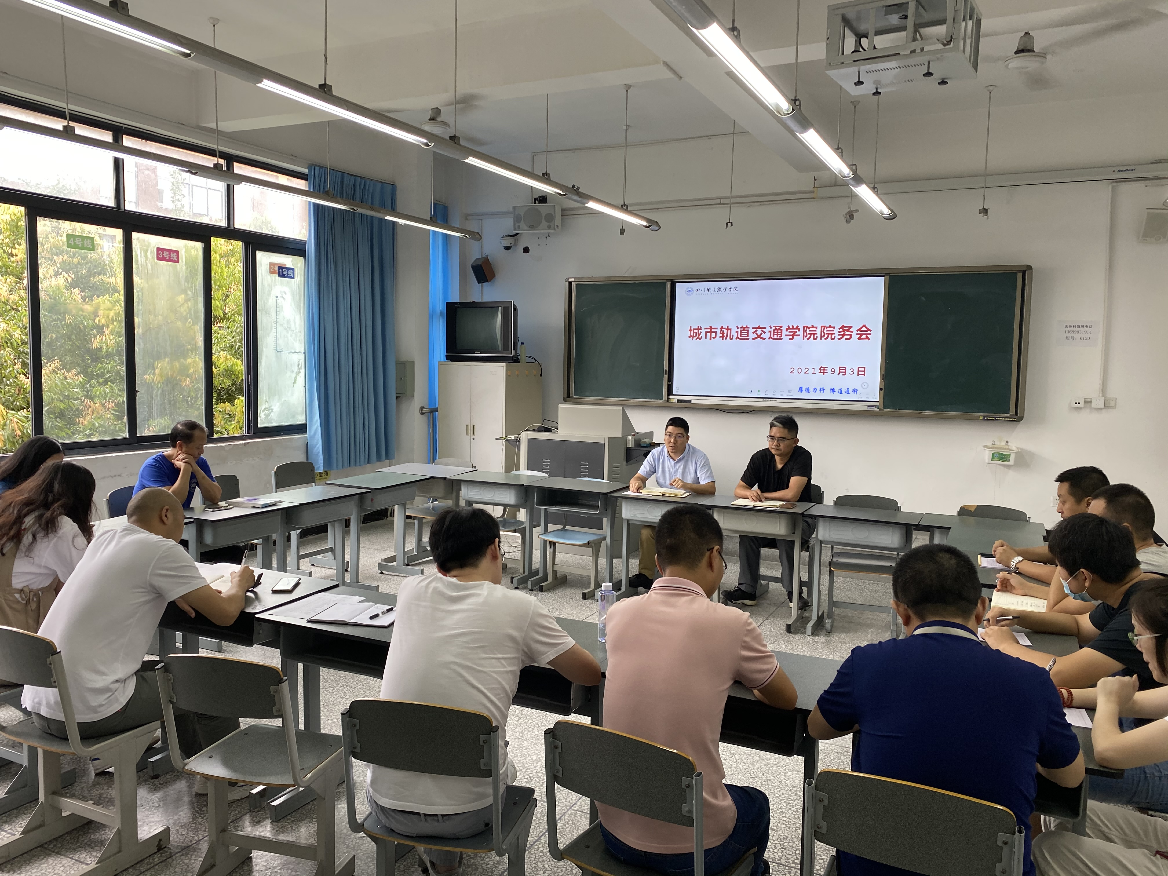 2021年9月3日上午10点,城轨交通学院在一号教学楼1311室召开柴云振英雄事迹学习会暨2021-2022学年第一学期第一次院务会。