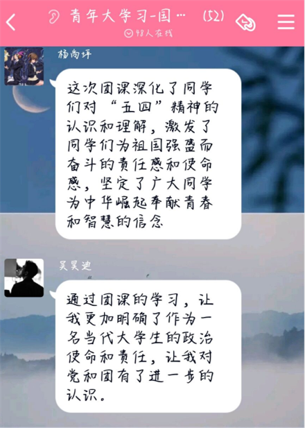 本次云团课围绕中国共产党为什么“能”、马克思主义为什么“行”、中国特色社会主义为什么“好”等重大问题,运用党史微课、主题团日、实地探访、青年典型展示、文化文艺节目等多种形式,呈现中国共产党波澜壮阔的百年历史。观看云团课后,同学们表示,感受到了中国共产党人坚定的理想信念和高尚的价值追求,对党史、团史有了更加深刻的认识和了解,作为新时代青年,需知史爱党、知史爱国,从党的百年历史中汲取奋进力量。