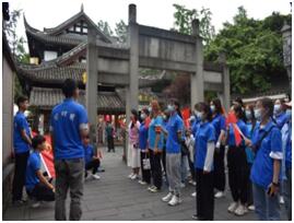 2021年5月15日管理系团总支学生会赴锦里开展“传承红色精神,讲好中国故事”社会实践活动,我系共组织了47名同学参与了此项活动。到达锦里后,首先参观了抗日英烈,率领川军带病奔赴抗日的第七战区司令长官,兼任集团军总司令刘湘墓地。随后,全体团员重温入团誓词、唱团,并歌共唱没有共产党就没有新中国”。同学们分6个小组对游客进行采访、宣传等纪念建党100周年的相关实践活动。以“建党100周年我想对祖国说”为主题,进行个人集体视频拍摄及拍照,邀请游客和同学们共同录制“建党100周年我想对祖国说”相关视频,并对游客进行了党史宣传,向大家普及党史知识,讲好中国故事。