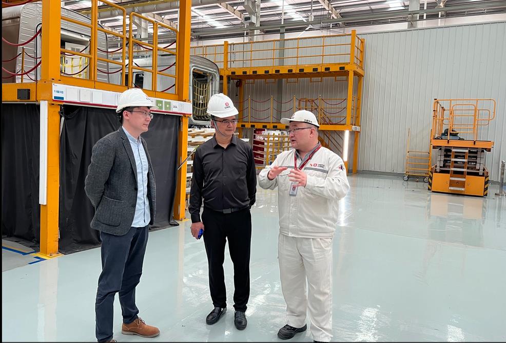 会后,在吴健带领下,大家一起参观了公司的检修车间、装配车间、调试车间、转向架车间以及实习学生的生活宿舍,详细了解了公司主营业务、项目开展及学生实习生活情况。