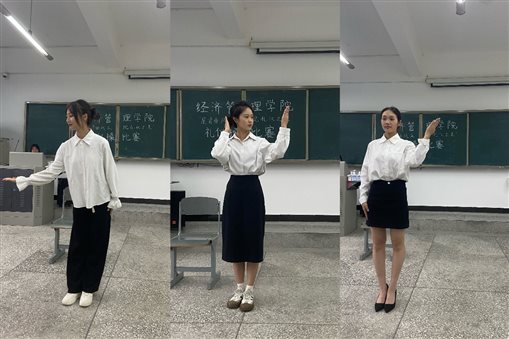 比赛中,参赛选手在音乐伴奏下,动作整齐、编排新颖、神采奕奕、充满自信。他们标准的着装、挺拔的体态、端庄的举止,赢得了评委们的一致好评。赛后,贾瑛老师对同学们的动作细节进行了纠正和详细指导。同学们纷纷表示收获颇丰,也更加明确了礼仪操的细节和规范标准。