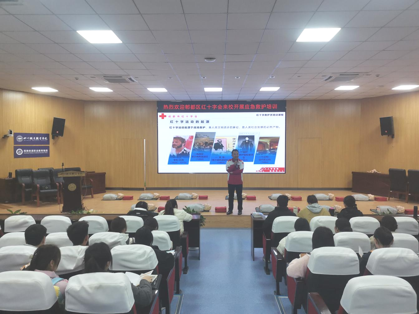 培训期间,来自成都市红十字会、郫都区红十字会的资深讲师冷从明、吴明伟、康凤娟亲临现场,为同学们带来了专业且实用的专题授课。培训课程体系完善,理论知识层面,深入讲解了红十字运动的起源、救护概论,细致剖析了心肺复苏、常见急诊、意外伤害以及突发事件的应对策略。实操环节更是精彩纷呈,学员们在老师的指导下,围绕心肺复苏、创伤止血与包扎等核心技能展开实操演练,在实践中不断精进救护本领。经过两天高强度的学习,65 名学员凭借扎实的理论功底和娴熟的操作技能,顺利通过考核,成功获得红十字救护员证。