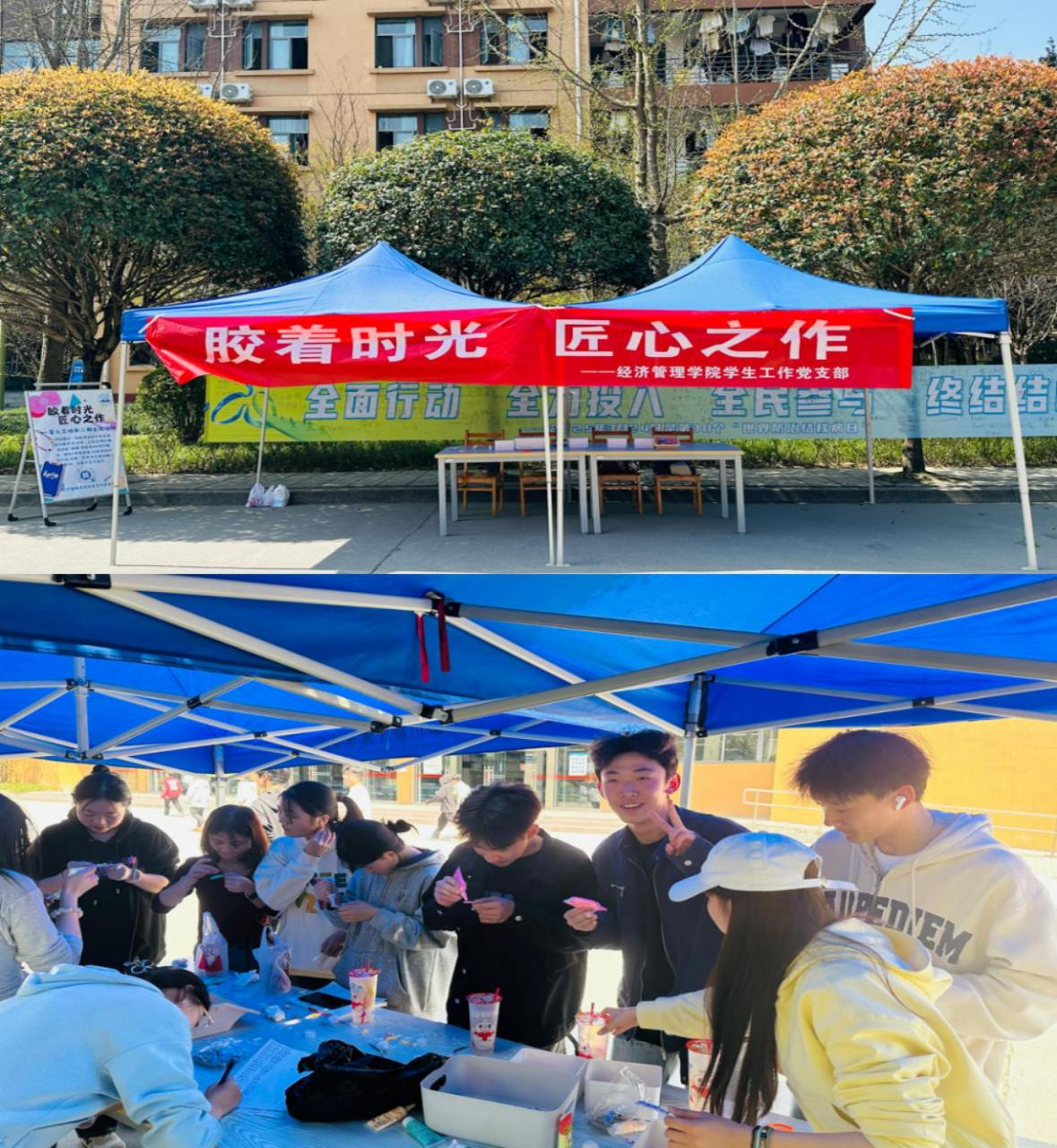3月26日中午,经济管理学院学生工作党支部于食堂对面绿荫掩映处,精心策划了一场别开生面的“春日创意·奶油胶DIY”活动,吸引了学校师生驻足观看并参与制作活动。