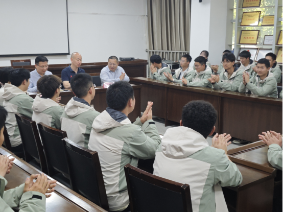 4月17日,成都工业职业技术学院副校长张弘,轨道交通学院院长曹勇一行人赴铁道工电学院看望参加2+1培训的本校学生,了解学生近期学习情况并听取意见。 铁道工电学院院长王立对“2+1”入职培训开展安排进行汇报,重点介绍了专业培养,学生管理、教学预期等方面的情况。他表示学院非常重视培训内容体系的建设,通过建设理论试题库强化学生培训效果,保证所有学员能够顺利完成考核。 张弘充分肯定了学院“2+1”培训工作的安排及目前取得的成效,并对学院给予参培学生的帮助与关爱表示了感谢。他强调“2+1”校企联合培养机制有利于企业发展和毕业生岗位成才,希望参培学员能够尽快适应,做好从学生到准铁路人的身份转变。 曹勇表示在就业日趋严峻的环境下,毕业生要格外珍惜来之不易的实习和工作机会。同时,培训期间的安全应置于首位,尽快适应环境,熟练掌握安全红线和专业理论知识,为未来上岗做充分准备,早日成为一名合格的铁路职工。