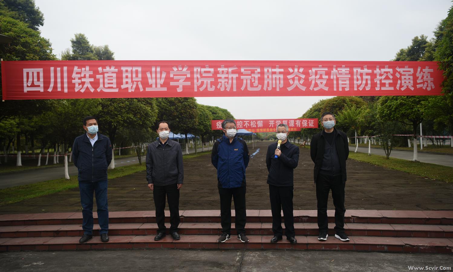 为真正做到有效演练,防范于未然,学院疫情防控工作领导小组全面落实上级工作要求,结合学校实际,精准施策、科学防控,详细制定相关预案,准备各类物资,并对演练做出详细部署安排,明确演练流程。实战演练中,教职工按照人员分工及岗位责任直接参与,家长和学生由教职工扮演。分别模拟入校管控场景、晨午晚检场景、就餐场景、应急处置场景等发现体温异常及疑似症状学生的应急处置流程。演练流程全程跟拍记录,对演练中暴露的问题逐一解决,最终会形成标准的疫情防控处置流程,供广大师生学习。 上午8:45,周立做演练动员,党委委员、副院长刘昊君、吴斌、黄勇做相关工作安排。