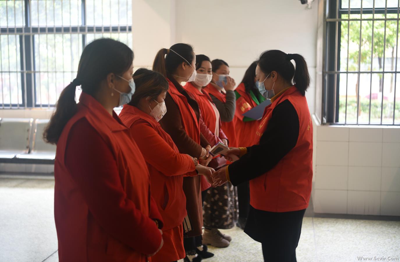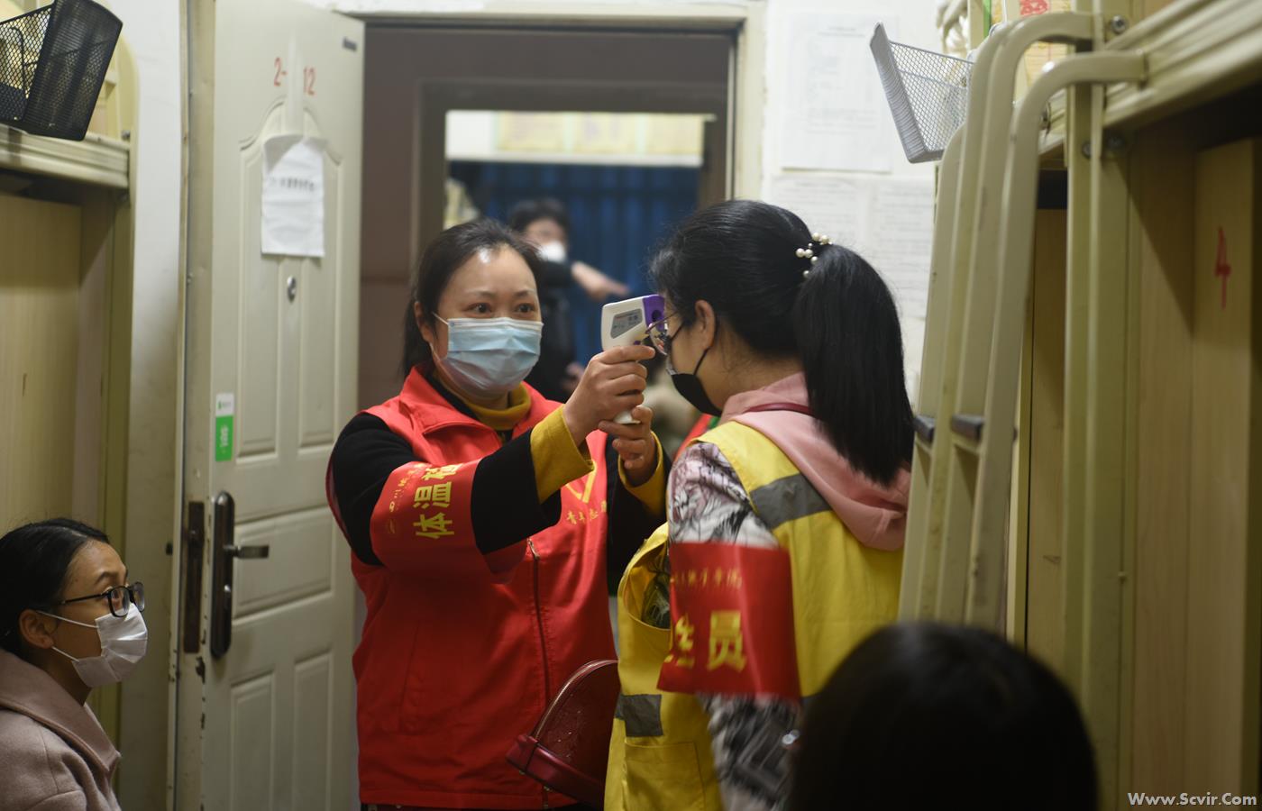 二、全时段、全覆盖体温监测,晨、午、晚检不留盲点 1. 工作准备。楼层生活辅导员组织各片区工作人员召开准备会。清点片区工作人员到位情况,开展工作人员体温互检登记(体温不正常者不得参加检测工作,并应急处置)。检查工作人员口罩佩戴等防护情况,讲解工作要求和工作流程,分发检测工具,发放片区体温检测登记表。 2.体温检测。工作人员(甲、乙2名)前往划定负责片区开展学生体温检测登记工作。工作人员甲负责检测学生体温,询问每个人健康状况,并逐一向工作人员乙报告检测数据。工作人员乙将工作人员甲报告数据填写入《第一片区学生体温检测登记表》。 3. 结束工作。《第一片区学生体温检测登记表》经工作人员甲、乙复核无误后签字交楼层生活辅导员,楼层生活辅导员检查登记表数据规范性后签字,验收额温枪,片区工作人员结束工作。