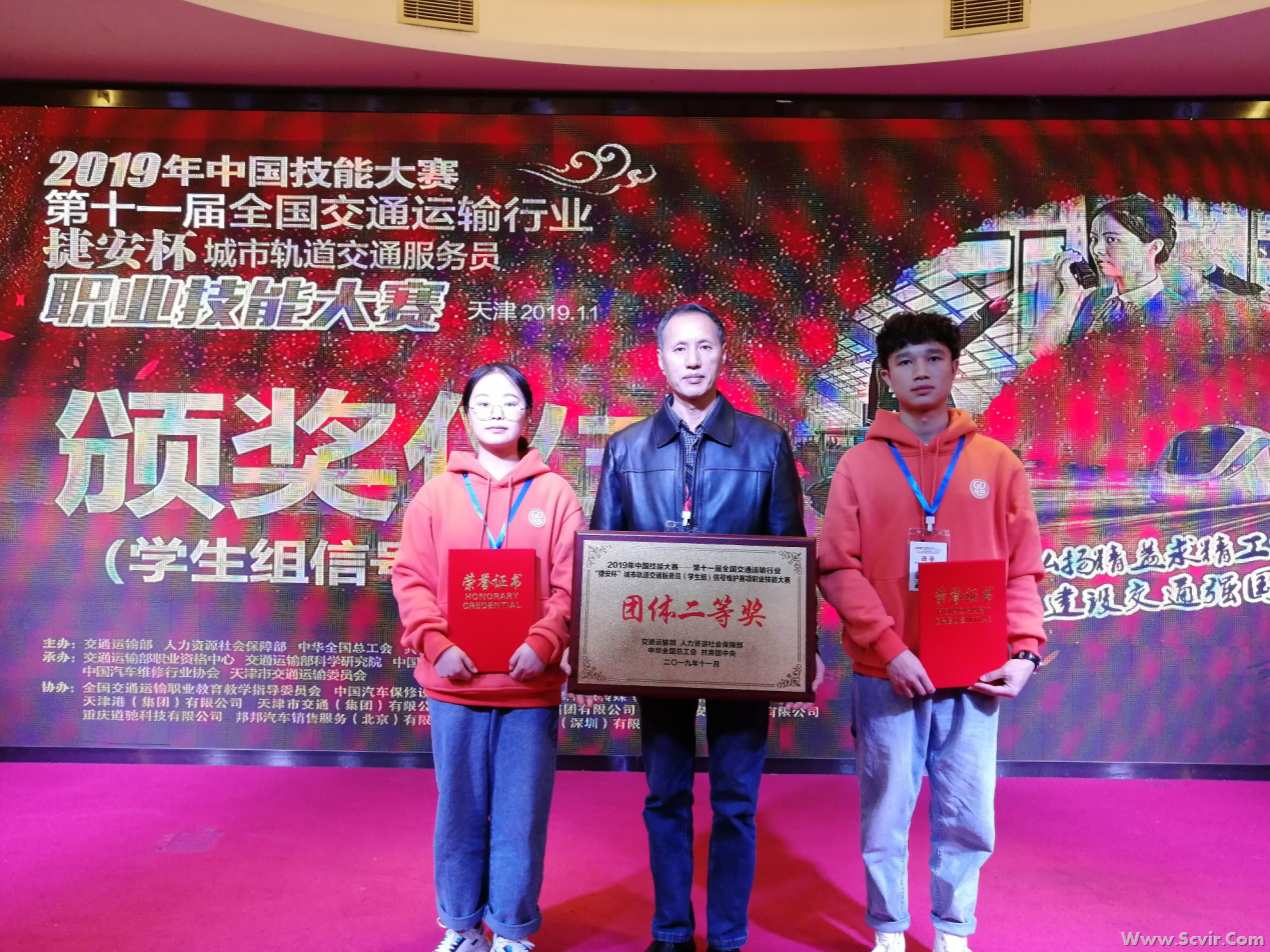 2019年11月19日至21日, 2019年中国技能大赛——第十一届全国交通运输行业“捷安杯”职业技能大赛在天津梅江会展中心举行。我院学生组信号维护赛项代表队经过前期的四川预赛、重庆拉练赛,最终进入了全国总决赛,与来自全国36所职业院校的代表队进行激烈角逐。经过两天的激烈比赛,我院代表队获得了团体二等奖的好成绩。电信工程系曾佳美、毛启章两位同学获得学生组二等奖,杜中彦、聂富春老师获优秀指导教师奖。杜中彦老师受邀作为此次大赛的裁判,获得了优秀裁判员称号。 在此次技能大赛参赛学生的选拔中,电信工程系全系学生积极报名,在训练过程中实行末位淘汰制,经过四个多月的刻苦训练和相互配合,最终,曾佳美、毛启章两位同学以出色的现场发挥和过硬的技能脱颖而出,被选定为学院代表队队员。在备赛过程中,电信工程系领导时刻关注学生训练情况,指导教师日以继夜地对学生进行辅导,学生充分利用课余时间勤奋训练。 我院高度重视学生职业技能,强化技能操作,此次大赛点燃了全院师生参加全国职业技能大赛的热情,在师生群体中营造了学技能、练技能的良好氛围,进一步推动了“以赛促教、以赛促学”的教育教学改革模式,锻炼了队伍,对提高办学质量和水平起到了促进作用。