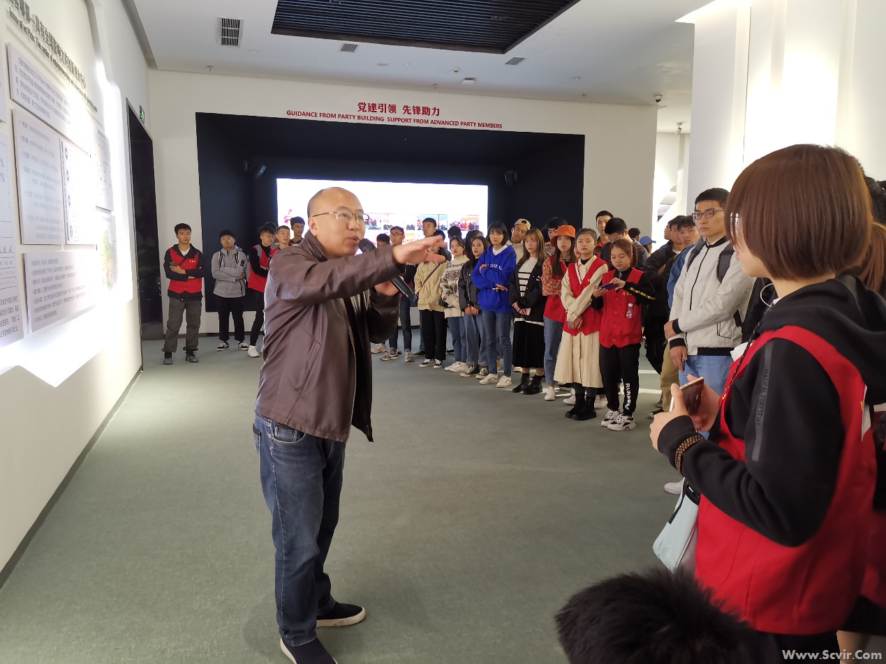 最后,师生们参观了创新创业中心展览厅。在郫都区文联秘书长何国风主任的亲自讲解下,师生们亲身感受“南有菁蓉镇”的特色和国家首批双创示范基地的优势,对我国的创新创业政策和创客实践活动有了更加直观的体验。