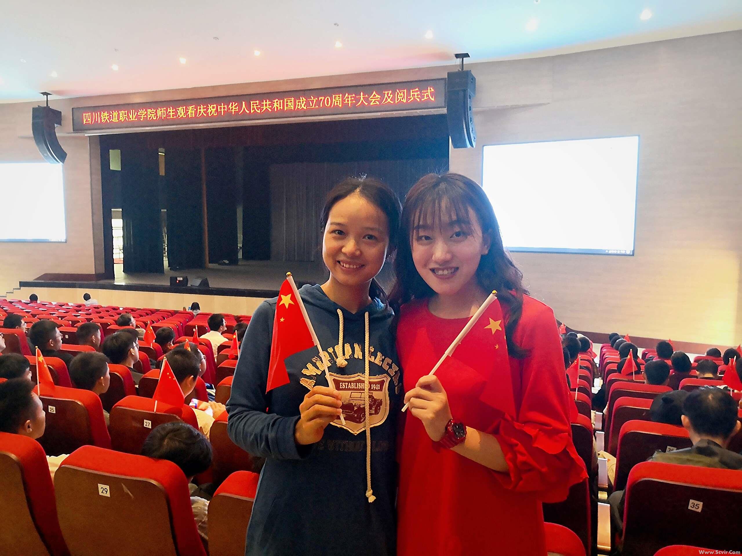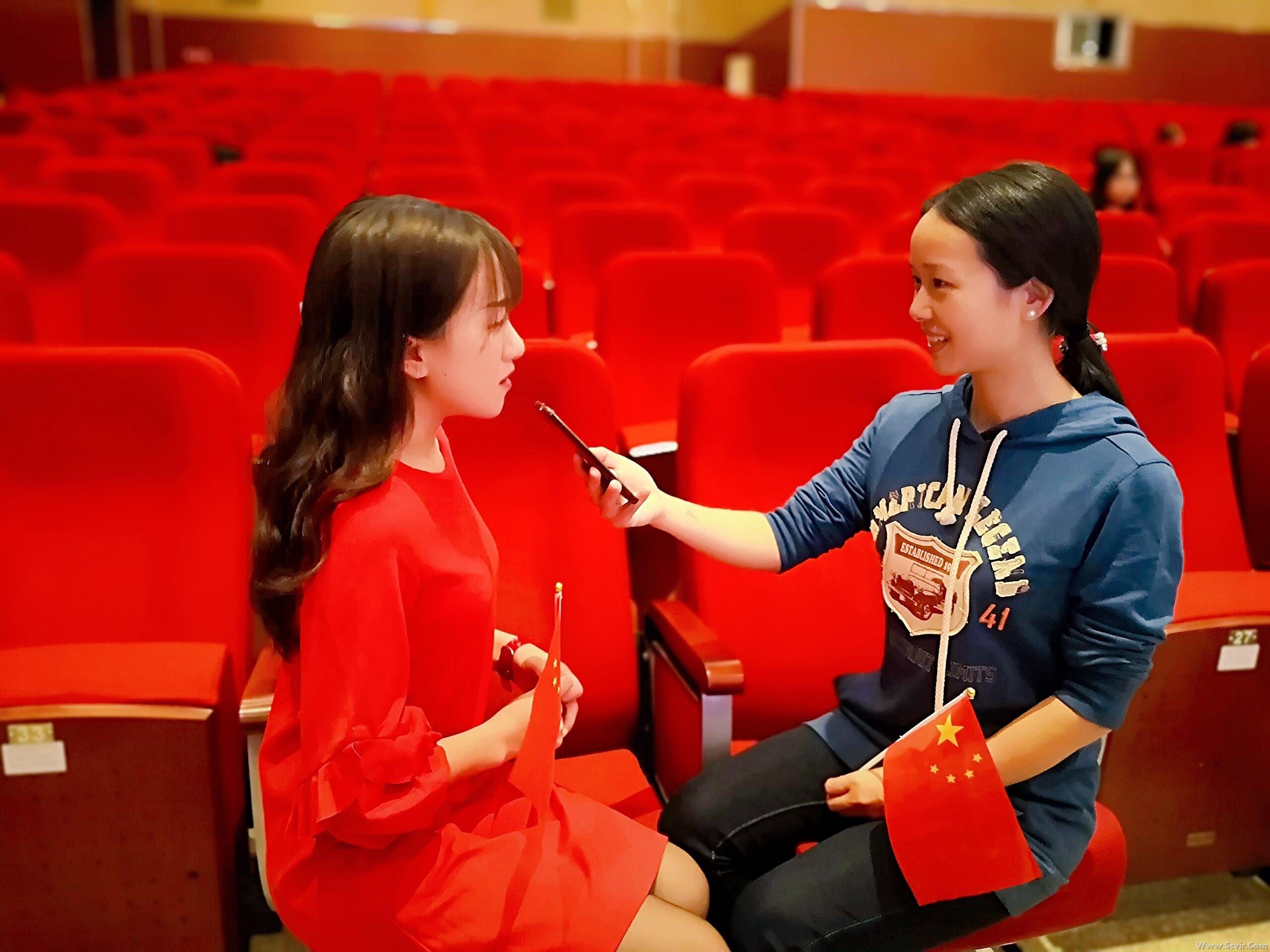 学校大礼堂内浓浓的庆祝氛围让同学们觉得这一次国庆留校过得很有意义。激动时刻,同学们挥舞起鲜艳国旗!