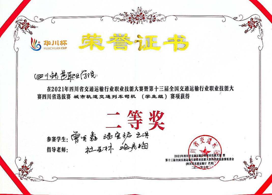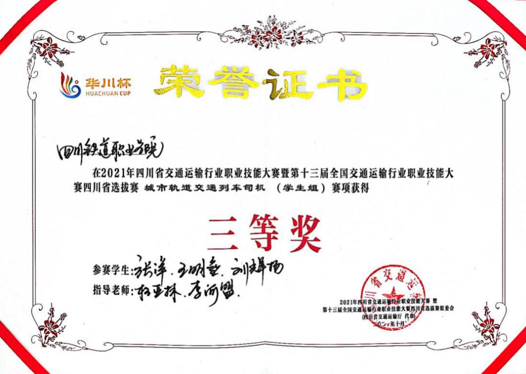 为大力弘扬劳模精神、劳动精神、工匠精神,10月29日,2021年四川省交通运输行业职业技能大赛暨第十三届全国交通运输行业职业技能大赛“华川杯”四川省选拔赛圆满落幕。伟德国际城市轨道交通学院6名学生参加城市轨道交通列车司机(学生组)赛项,与省内18支参赛队激烈比拼。最终,伟德国际学生组一队(王淇、曾关鑫、潘宣铭)获省赛二等奖,学生组二队(张洋、王明垒、刘辉扬)获省赛三等奖。学校荣获优秀组织奖,并获国赛参赛资格。