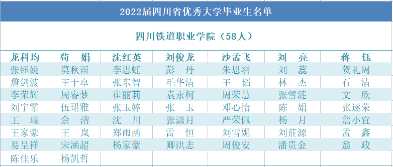 近日,四川省教育厅公布了2022届四川省优秀大学毕业生认定结果。经班级推荐、院系推荐、学校审核、教育厅复核,共计认定17611名大学生为2022届“四川省优秀大学毕业生”。其中,伟德国际共有铁道交通运营管理19T1班王瑞等58名学生入选。