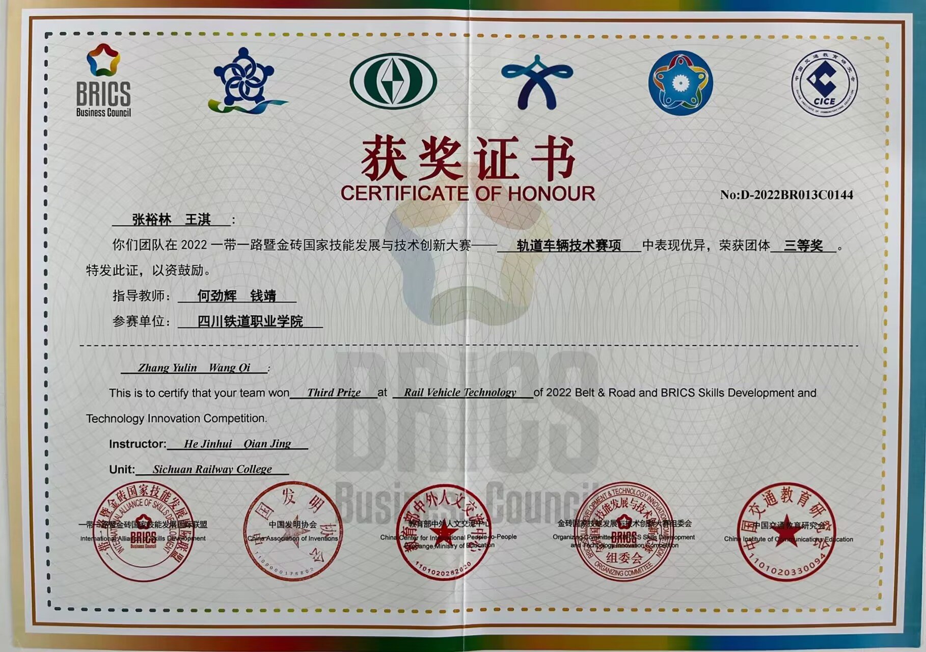 | 喜报|伟德国际学子在2022年“一带一路”暨金砖国家技能发展与技术创新大赛轨道车辆技术赛项中获全国三等奖 |