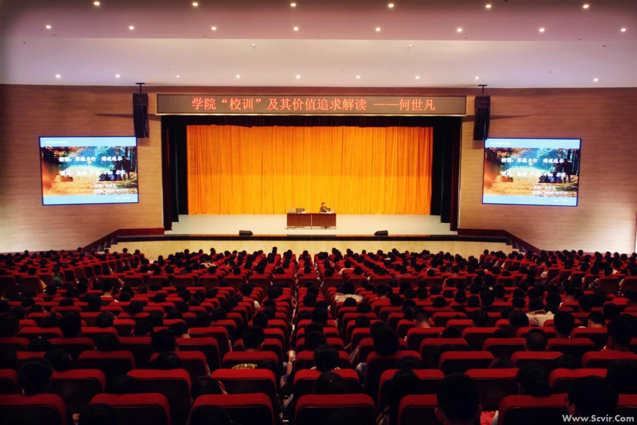 9月7日下午,新落成的学校大礼堂迎来了处女秀:伟德国际国学造诣颇深的学者何世凡老师在这里作“学院‘校训’及其价值追求解读”的专题报告。1200个座位座无虚席,2016级新生在这里接受他们进校的第一场校园文化专题熏染。 伟德国际“厚德力行,博道通术”的校训,以“为人”、“为学”为主旨,强调求真求知与人格完善兼顾,培养德才兼备的人。“厚德”出自《周易》“地势坤,君子以厚德载物”。强调伟德国际以道德为本,德育为先,提高师生道德修养,树立正确价值观、人生观、世界观。“力行”出自《中庸》“好学近乎知,力行近乎仁,知耻近乎勇。”要求师生身体力行,与时偕行,做一个有仁心、有仁德、有仁爱的人。“博道通术”出自《墨子》,体现了科学与技术相结合的职业教育特色,重视技术应用和行业需求。校训兼收儒、墨两家核心思想,承载着深厚的历史和文化底蕴。字字珠玑,指引青年学子立身处世,把握学问之道和为人之道。不仅强调了学生对知识、技能和真理的不懈追求,同时也要求学生塑造健全人格,传承传统文化。既要“成才”,更要“成人”。