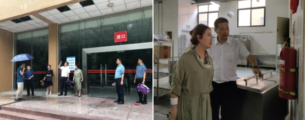 为给成都大运会顺利举行营造良好的校园环境,及时发现问题,消除安全隐患,7月13日下午强降雨期间,由校长赖芳带队,副校长黄勇和安全保卫处、学生处、教务处、后勤国资处等部门负责人及相关人员组成检查组,顶风冒雨对成都校区校园重点场所进行了安全大检查。