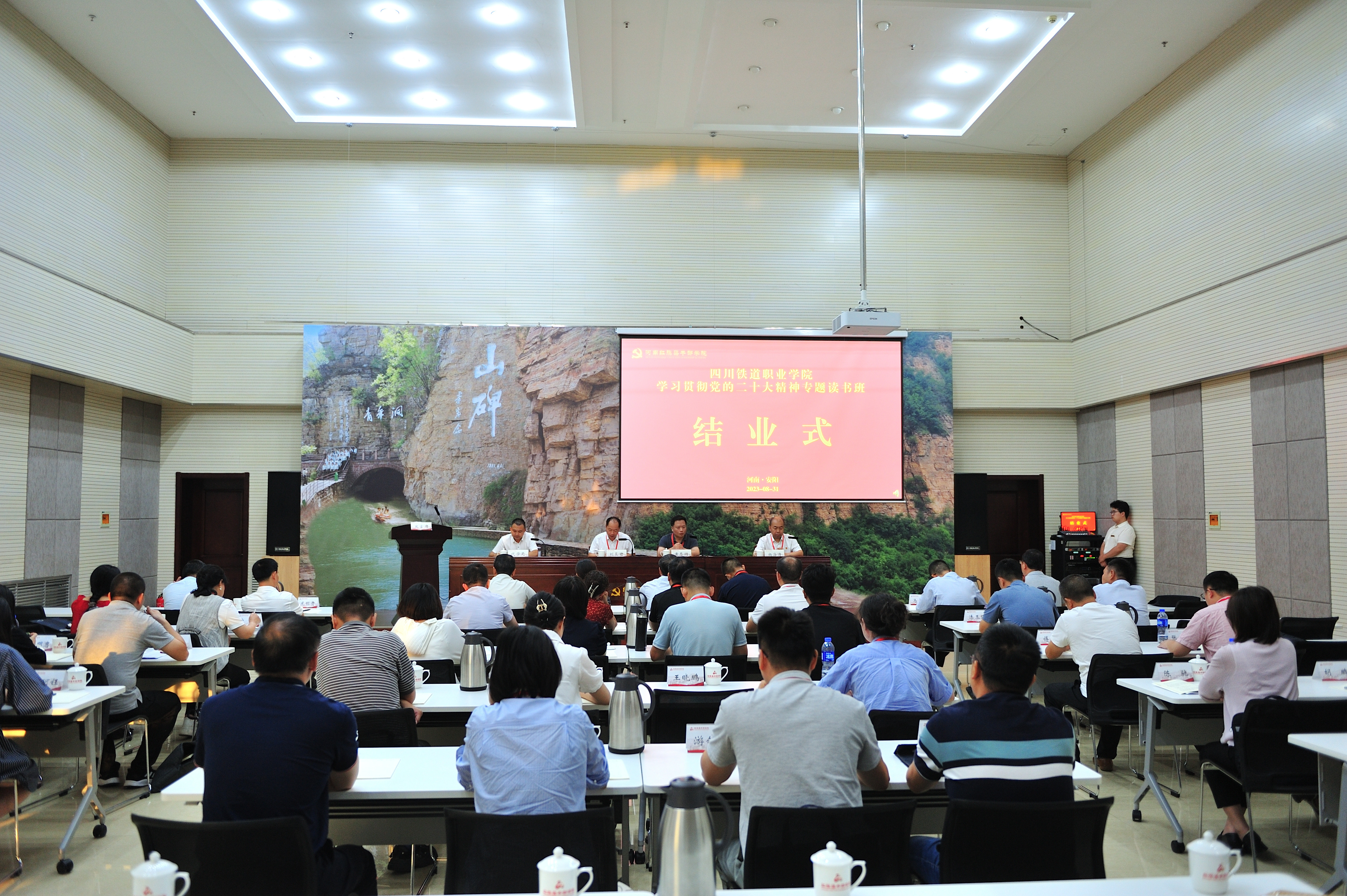 本次读书班教学内容丰富,教学形式多样。学员们纷纷表示,读书班结业不是结束,而是新的开始,要将红旗渠精神与学习贯彻党的二十大精神结合起来,与学习贯彻习近平新时代中国特色社会主义思想主题教育结合起来,与贯彻落实学校第一次党代会精神和年度重点工作结合起来,与学校“双高计划”建设任务结合起来,与做好本职工作结合起来,以积极进取、昂扬向上、团结协作、无私奉献的精神状态,为建设我们心中的“红旗渠”——更加现代、更加开放、更加美丽,轨道交通特色鲜明的国内一流高职院校,书写初心使命,体现作为担当。 撰稿:杨海涛 审稿:刘昊君