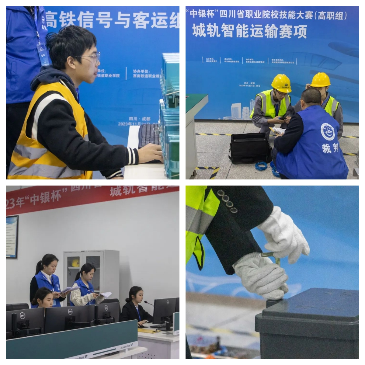 为深入学习贯彻党的二十大精神和习近平总书记关于技能人才工作的重要指示精神,落实党中央国务院、省委省政府关于加强技能人才队伍建设的决策部署,加快培养和选拔交通运输与装备制造领域高素质技能人才,大力弘扬劳模精神、劳动精神、工匠精神,11月24日至26日,2023年“中银杯”四川省职业院校技能大赛(高职组)城轨智能运输赛项和高铁信号与客运组织赛项在伟德国际英国顺利举行。本次比赛由四川省教育厅主办,伟德国际英国承办,西南铁道职业教育集团协办。来自四川交通职业技术学院、四川邮电职业技术学院、成都工贸职业技术学院等16所高职院校的44支代表队在2个赛道同台竞技。