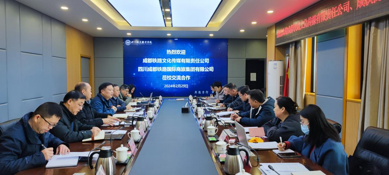 座谈会上,黄恩兴对企业代表团的到访表示热烈欢迎,他简要介绍了学校基本状况、发展历程、办学理念、人才培养、未来发展等情况。他表示,学校全面贯彻落实党和国家对高等职业教育发展新要求,深入贯彻落实全国职业教育大会精神和国家、省职业教育改革实施方案,以“根植行业、服务区域、走向全国”的发展理念服务新时代西部大开发、成渝地区双城经济圈建设、川藏铁路建设等国家战略。他重点介绍了学校与成都市总工会合作的“匠造美好”、与安德街道拟合作的“众创空间”等项目,希望校企双方能够找到更多合作契合点,在产教融合、科教融汇方面能够进一步走深走实,实现合作共赢。 韩定鸿代表成都铁路文化传媒有限责任公司对学校的热情接待表示感谢,简要介绍了公司基本情况,重点指出了公司“广告+文化”双轮驱动的产业定位、发展模式及业态成果。他表示,希望能以此次座谈会为契机,积极发挥各自领域优势,重点围绕广告传媒、文化创意等产业,强化资源协同共享,畅通校企交流渠道,推动实现合作共赢;况新蓉代表四川成都铁路国际商旅集团有限公司介绍了公司旅游、酒店、保险等业务开展情况,她指出,公司业务的不断拓展对营销、旅游、酒店、保险等专业人才有着迫切的需求。她期待能与学校在人才培养、实习就业、旅游项目开发等多方面展开深度合作。 会后,调研团队一行参观了城市轨道交通研学基地,到经济管理学院就校企合作进行深入交流研讨。