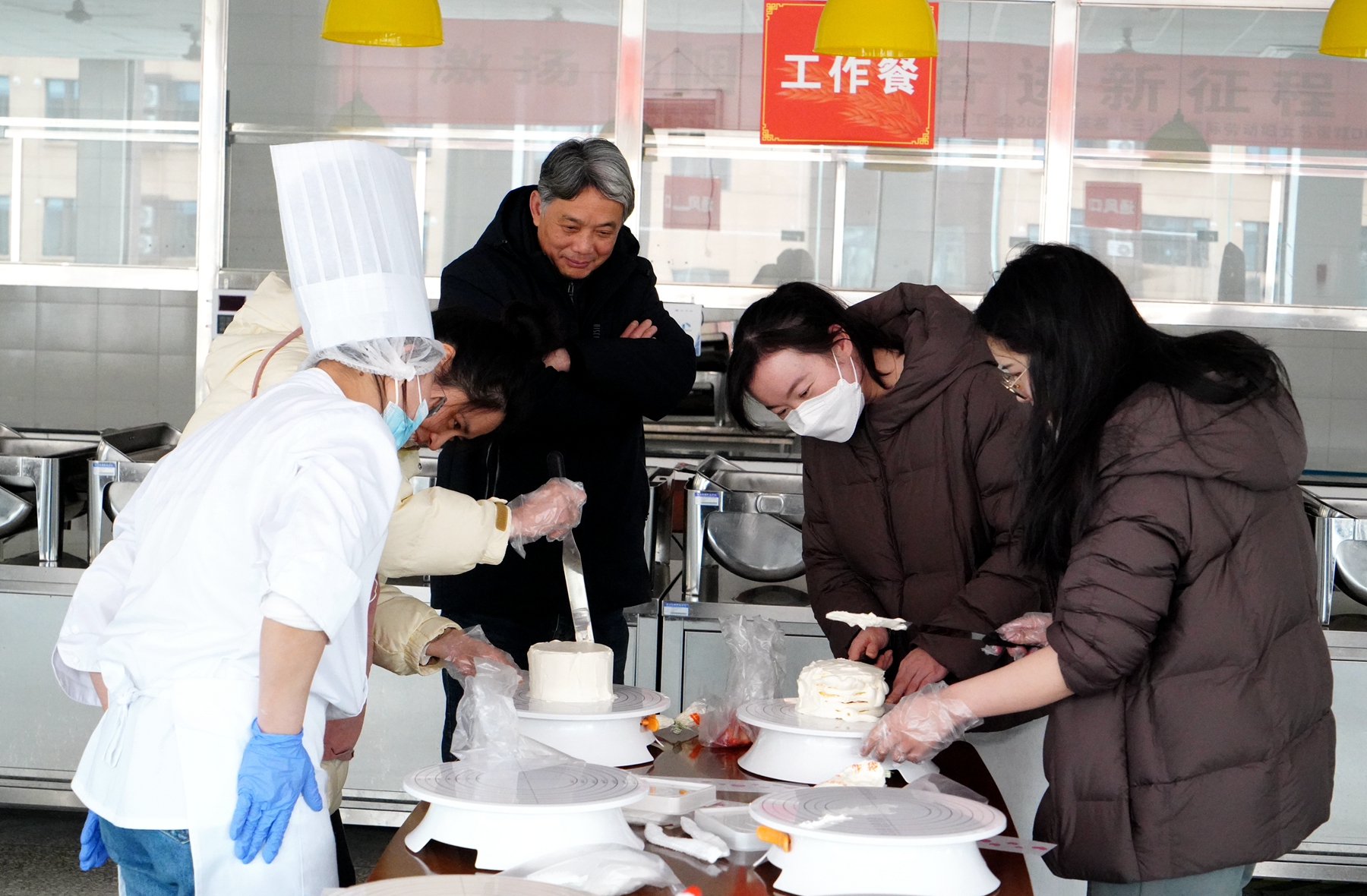 活动特邀了来自行业资深烘焙老师,现场为大家进行讲解和指导。烘焙师傅们详细讲解了制作蛋糕的材料、工具以及制作过程。随后为大家发放了材料,并演示了制作蛋糕的全过程。在师傅们的耐心指导下,女教职工们化身美食达人,经过涂抹奶油、裱花装饰、摆放水果之后,一个个美味的节日礼物就呈现在大家面前。 看着自己的劳动成果,大家异常兴奋,纷纷比较看谁的蛋糕更有创意、更精致,大家有的现场品尝并为自己制作的美味所折服,有的要带回家让家人一同分享甜蜜。生活辅导员李老师高兴地说:“这是一次特别有意义的活动,在特别的节日,品尝了自己亲手做的蛋糕,我感受到了学校对我们的浓浓关爱,很开心。”
