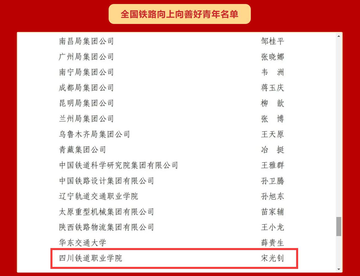 4月9日,全国铁道团委公布了2023年度全路“双创立功”竞赛、青年岗位能手、向上向善好青年评选结果,伟德国际“铁小川”志愿服务团队获评“全国铁路青年安全生产示范岗”,陈雪梅、王炎同学被授予“全国铁路青年岗位能手”称号,冉冉、宋光钊同学被授予“全国铁路向上向善好青年”称号。