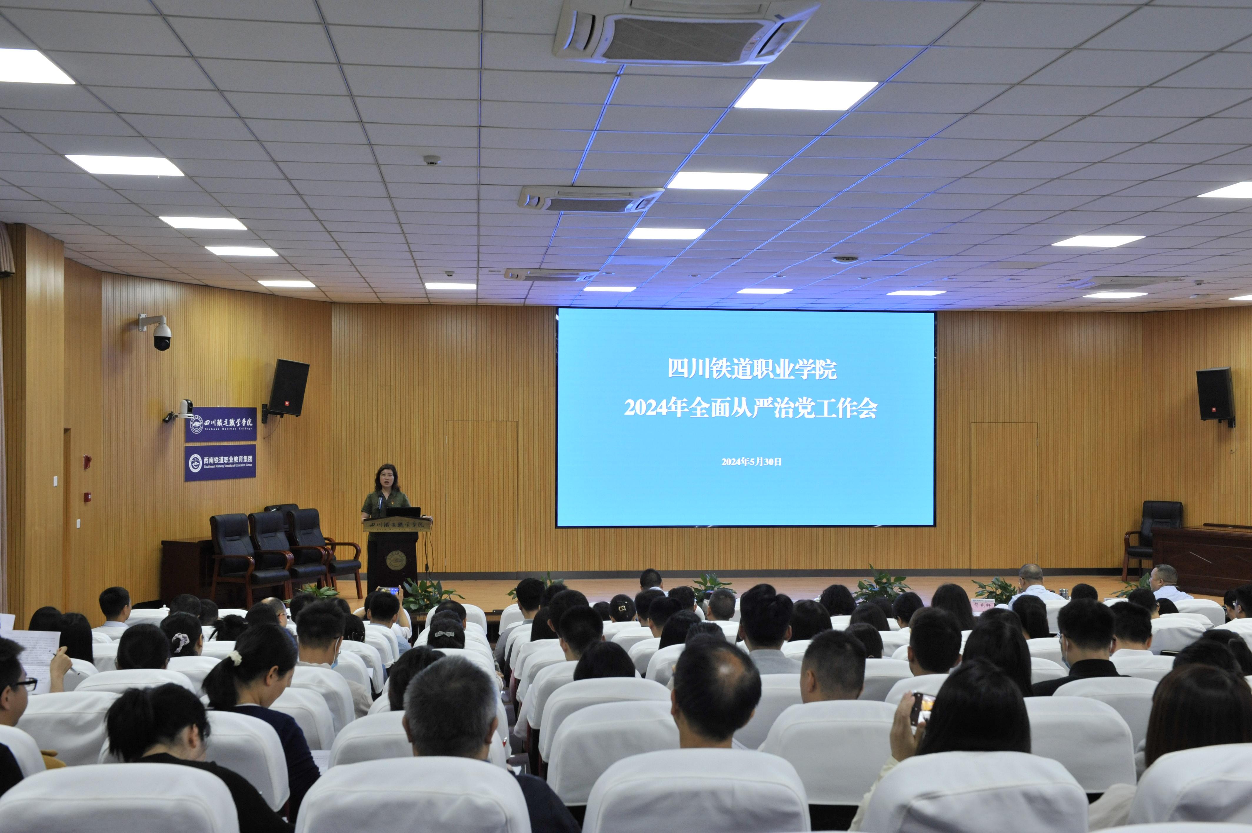 2024年5月30日,学校召开2024年全面从严治党工作会暨警示教育大会。党委书记贺兆轩出席会议并讲话,党委副书记、校长赖芳主持会议。 会上,组织观看了专题警示教育片;纪委委员、审计处处长王英对最新典型案例进行了通报;纪委委员、内江校区管委会党总支书记罗军围绕以案说德、以案说纪、以案说法、以案说责进行交流发言;党委委员、组织部部长代学灵同志以“学出忠诚 学出干净 学出担当”为题进行了党纪学习教育心得分享。 纪委书记池秋平在讲话中指出,要准确把握警示教育的重要意义,深刻认识开展警示教育是贯彻落实上级决策部署的实际行动,是一体推进“三不腐”的有力举措,是净化学校政治生态的现实需要。要认清形势,直面问题,切实增强整治学校突出问题的自觉性和紧迫性。从主体责任履行、日常监督、监督队伍建设等方面来看,学校还存在一些不足。要突出重点,压实责任,以彻底的自我革命精神,推进学校全面从严治党向纵深发展。强化政治引领,坚持党对教育事业的全面领导,深化标本兼治,持续释放一体推进“三不腐”的综合效应,聚焦作风建设,以更严举措着力纠治“四风”顽瘴痼疾,凝聚工作合力,切实增强监督的严肃性、协同性和有效性。