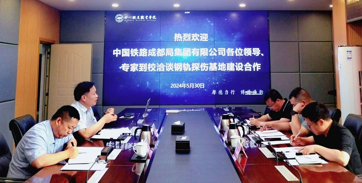 5月30日上午,中国铁路成都局集团有限公司职工培训部副部长刘明、工务部副部长吕元博、钢轨管理中心主任唐军一行来伟德国际洽谈钢轨探伤基地共建项目合作,会议在第五会议室进行,副校长黄恩兴、铁道工电学院院长王立参会。 会上,黄恩兴详细介绍了钢轨探伤基地建设的现状和未来规划。他表示,钢轨探伤基地应成为集员工培训、技能鉴定考试、学生日常教学、实训及技术技能研发于一体的综合性平台。在当前大数据、人工智能快速发展的背景下,基地的建设不仅要满足当前的实际需求,还要前瞻性地考虑未来铁路行业的发展趋势。同时,钢轨探伤基地的建成将惠及铁道工程、高速铁路综合维修技术、铁道供电、铁道机车等多个专业。他诚挚地希望中国铁路成都局集团有限公司能为基地建设提供宝贵的意见和建议,共同推动项目的顺利实施。 刘明对黄恩兴的提议表示高度赞同。他表示,中国铁路成都局集团有限公司与学校在此方面有着广泛的共识,双方的合作将有效解决当前职工培训和技能鉴定等现实问题,并为铁路行业的未来发展培养更多高素质人才。他表达了对双方合作的强烈意愿和信心。