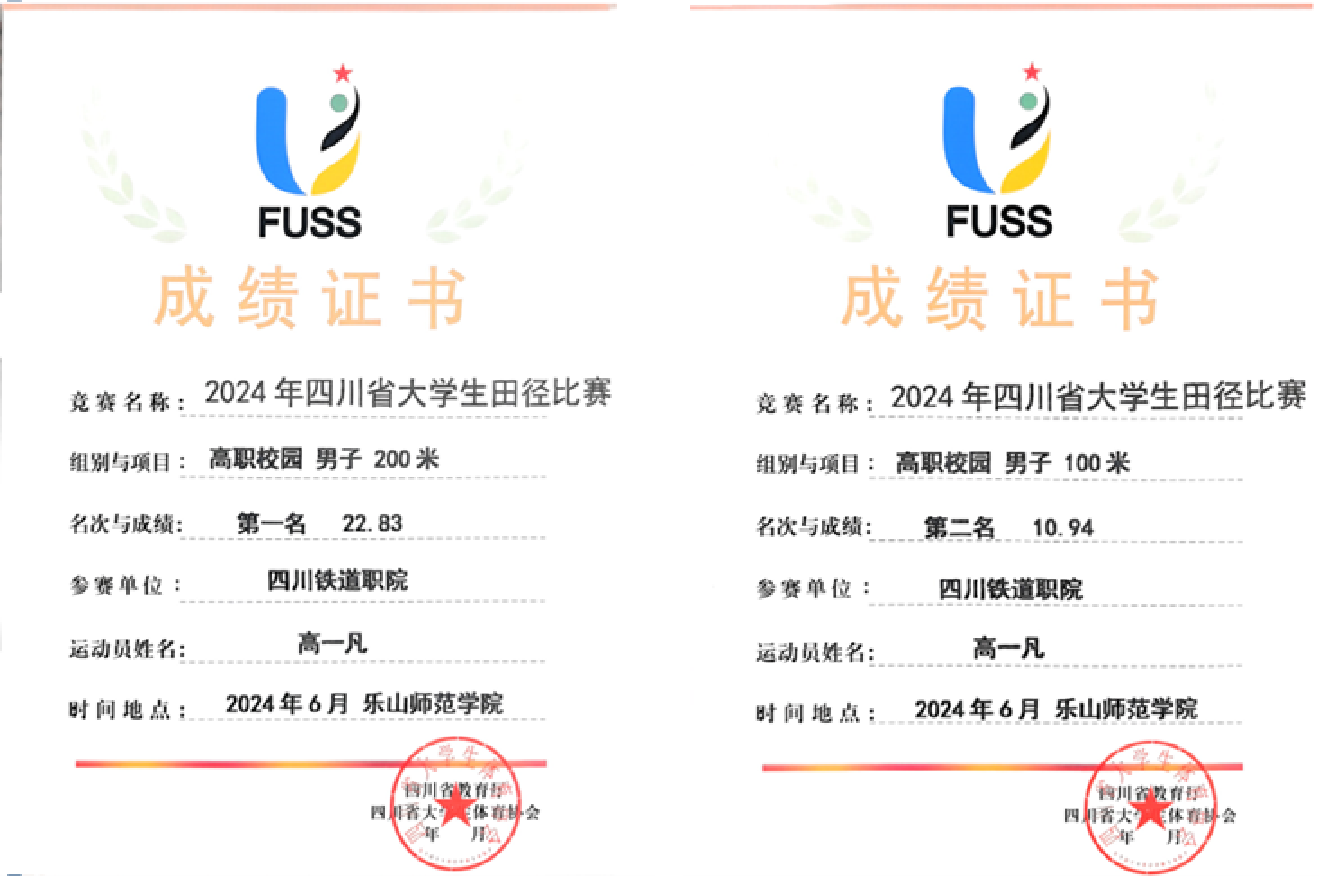 6月11日至15日,由四川省教育厅主办,四川省大学生体育协会执行、乐山师范学院承办的2024年四川省大学生田径比赛在乐山市体育中心举行。伟德国际代表队铁道机车22T1班高一凡在高职校园组男子200米决赛和100米决赛中分别获得第一名、第二名的好成绩。 作为全省大学生最高水平的田径赛事,本次比赛吸引了来自90所高校的2000余名运动员、教练员和裁判员参加,举办规模和参赛人数创历史新高。本次比赛中,伟德国际学子赛出了水平、赛出了风格,经过轮轮角逐,队员首次实现单项第一名的新突破,团体代表队在4*100米和4*400米比赛中分别获得第四名、第五名和高职校园组男子团体第六名的成绩。