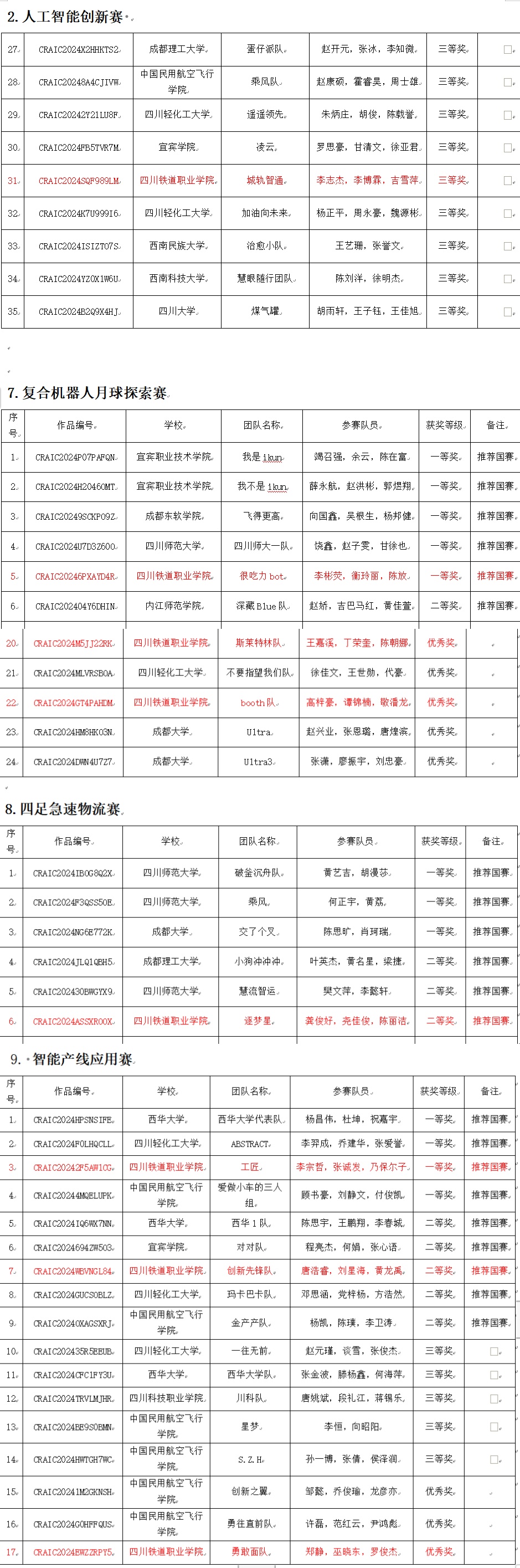 | 学校斩获中国机器人及人工智能大赛四川赛区选拔赛暨成渝地区第二届机器人及人工智能大赛多个奖项 |
