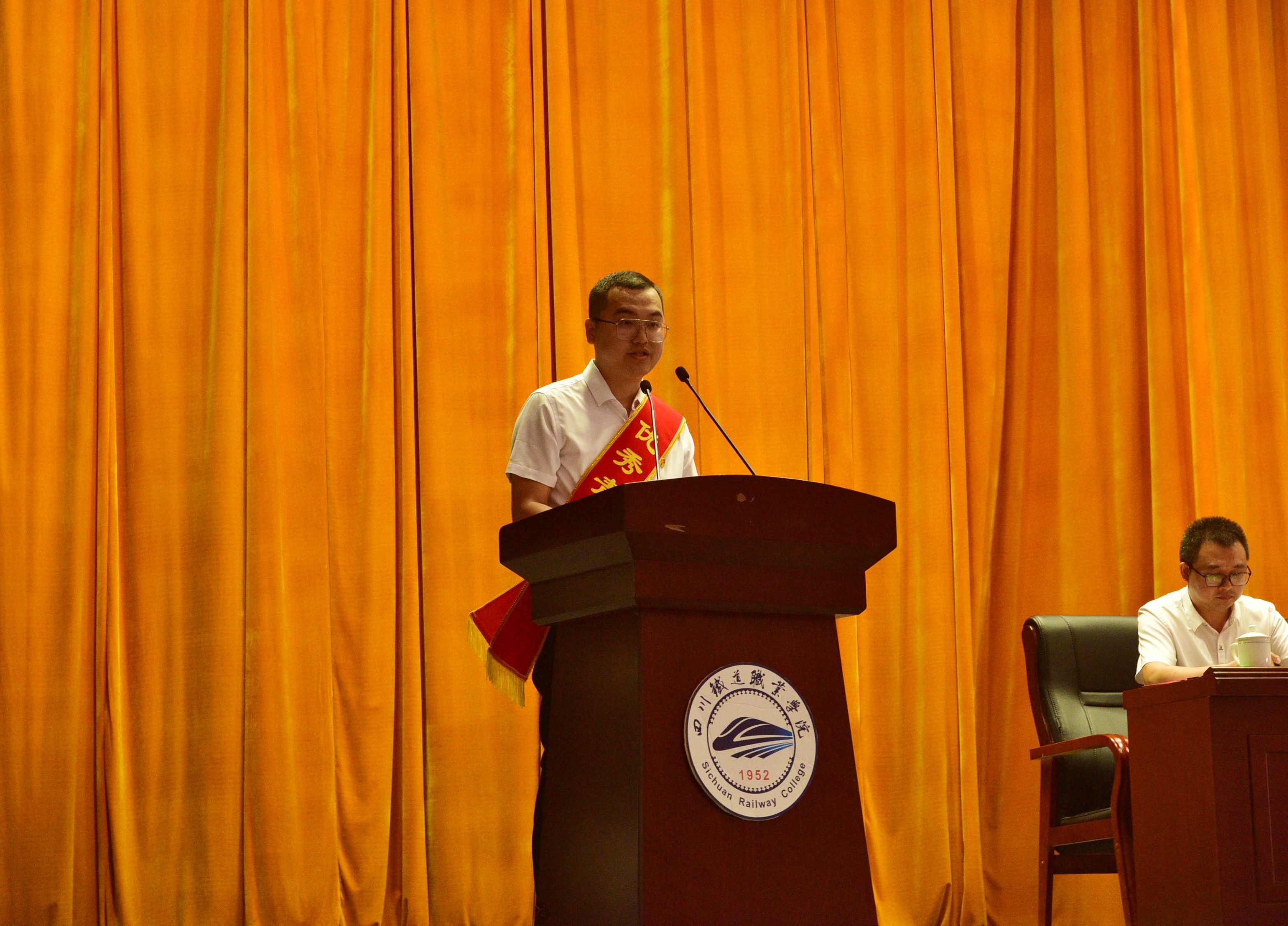 会议号召,迈步在百舸争流、千帆竞发的新时代,肩负着教育强国、交通强国的光荣使命,承载着广大青年技能成才、技能报国的热切期盼,奋斗在生机盎然、活力无限的中国大地,学校面临无比广阔的时代舞台和历史机遇,全体川铁教职工要在时代的浪潮中勇毅前行,共同书写个人成长与学校发展的辉煌篇章。 大会在师生大合唱《我和我的祖国》中圆满落幕。本次庆祝大会以线上线下融合的方式进行,主会场设在成都校区大礼堂,内江校区通过视频参会。