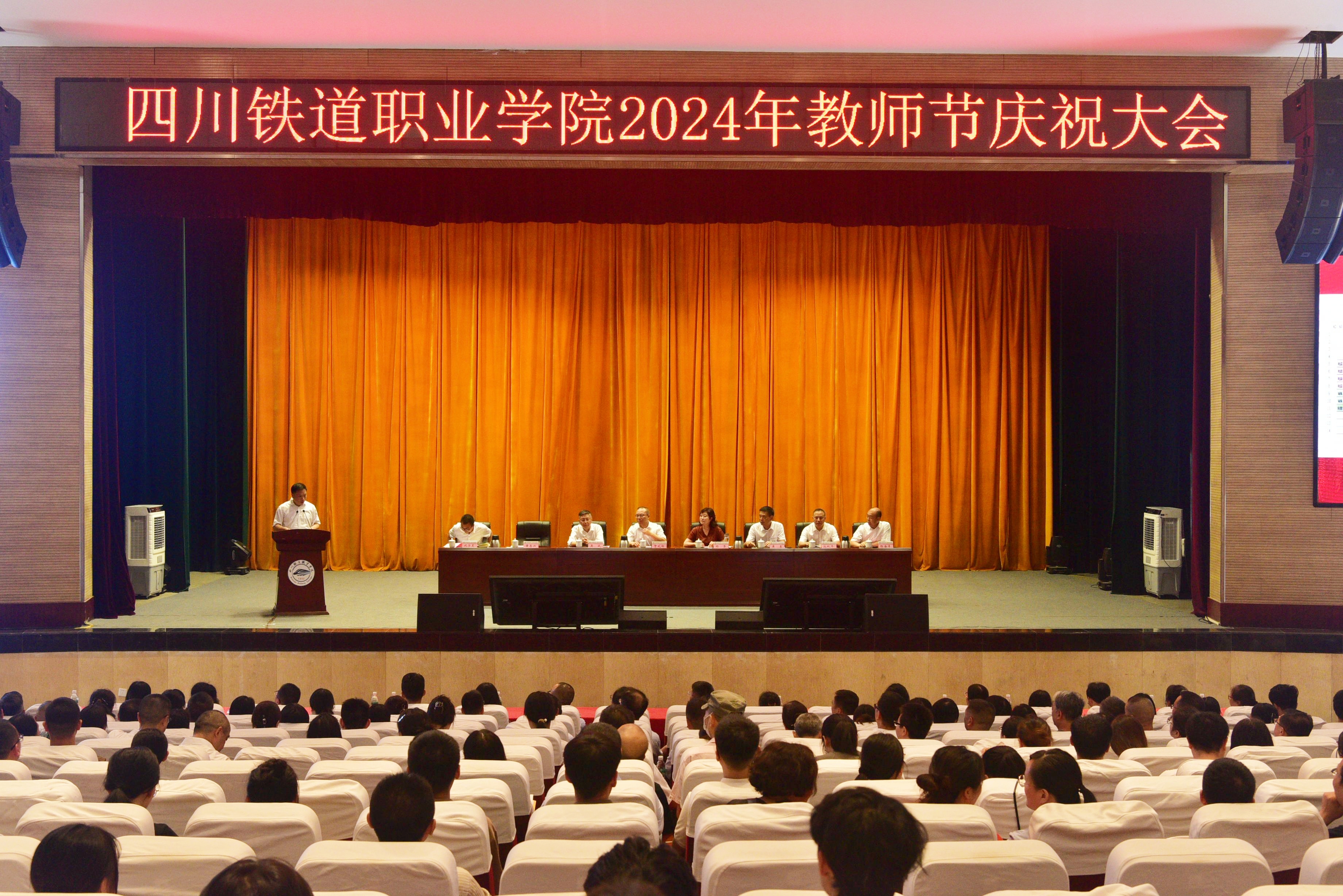 9月9日下午,全体教职工、荣休教师代表、学生代表欢聚一堂,隆重举行第40个教师节庆祝大会。党委书记贺兆轩出席大会,党委副书记、校长赖芳出席并讲话,党委委员、副校长黄恩兴主持大会。 大会伊始,全体教职工、退休教师代表以及学生代表通过视频共同回顾了过去两年来川铁教师们全心教书育人的感人故事。一幅幅生动的画面,一个个难忘的场景,让大家深刻感受到了教师们无私奉献、默默耕耘的精神风貌。