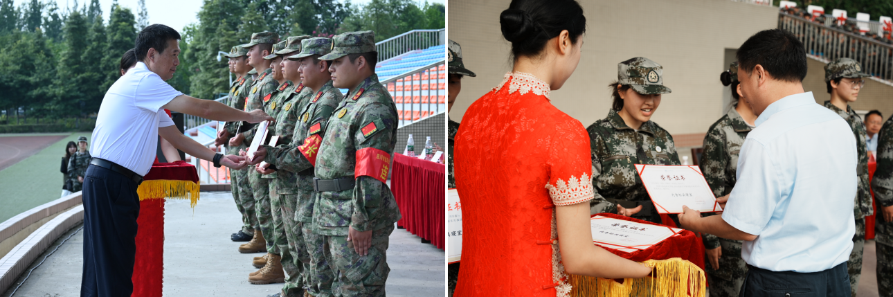 会上,主持人宣读了《关于表彰2024级新生军训优秀集体和个人的决定》,校领导为受表彰的先进集体和个人代表颁发了荣誉证书。