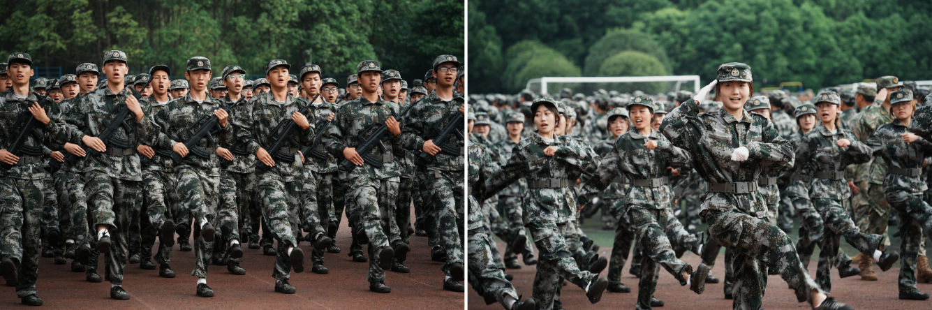 各新生代表方阵依次经过主席台接受检阅,同学们士气高昂、意气风发、眼神坚毅、步履铿锵,嘹亮的口号气势如虹,矫健的步伐整齐划一,展现了一支训练有素、威武顽强的纪律铁军。