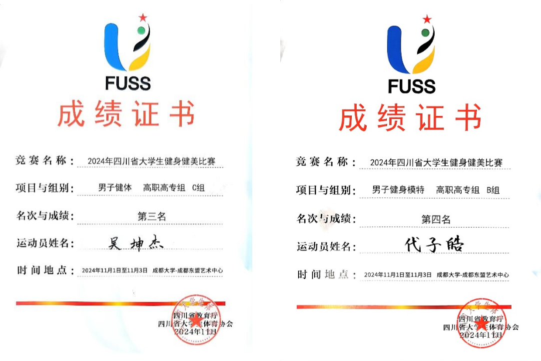 11月1日至3日,2024年四川省大学生健身健美比赛在成都大学举行。本次比赛由四川省教育厅指导,四川省大学生体育协会主办,成都大学承办,四川省健美操协会提供技术支持。伟德国际首次组织参赛的2名学生分别获得第三名、第四名的成绩。 本次比赛是四川省首次针对大学生群体举办的健身健美比赛,旨在引导更多大学生积极参与健身健美,塑造良好身体,陶冶审美情操,推动在全社会形成外塑形之美、内修心之美的健康风尚。比赛吸引了来自四川省33所高校、34支代表队共291名运动员参赛。赛事设传统健美、男子健体、女子健身比基尼、男女健身、男女健身模特、健身混合双人、健身健美集体造型和时尚模特10个竞赛项目。学校参赛选手以精准的动作、强健的体魄展示了健康之美,诠释了健身健美运动的魅力及健康生活的态度。经过激烈的角逐,伟德国际选手吴坤杰斩获男子健体高职高专组C组第三名,代子皓在男子健身模特高职高专组B组荣获第四名。