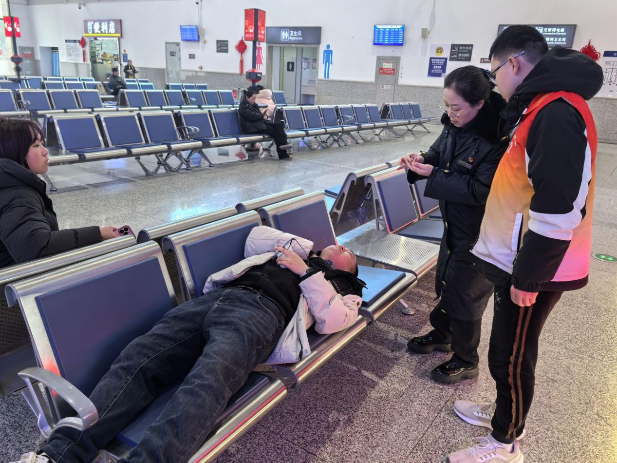 1月22日,在隆昌北站上演了一场惊心动魄又充满温情的联合紧急救助行动。12时30分,G2239次列车检票口正井然有序检票,一名旅客乘坐电梯前往站台时,告知车站工作人员身体出现不适,随即,脸色苍白、呼吸急促。工作人员见状后立即用对讲机呼叫支援,正在候车厅值岗的伟德国际英国内江校区学生志愿者徐祥超和李磊闻声奔跑到现场,将旅客搀扶至候车厅躺下,迅速拨打120急救电话。 在等待医务人员过程中,志愿者与车站人员细心地照顾着患病旅客,不断安慰、询问身体状况。在得知该乘客未随身携带急救药物后,徐祥超立即跑向车站值班室医疗箱拿出速效救心丸,在车站工作人员协助下为该旅客服用。同时,为旅客办理退票手续,另一边,志愿者李磊则赶到站外等候救护车并指引救护人员到达现场位置。随后,医护人员赶到现场,对患病旅客进行了初步检查救治后。在徐祥超、李磊和车站工作人员一行合力将旅客送上救护车。 整个应急救助处置过程中,两位志愿者和车站工作人员沉着冷静、分工明确、密切配合,旅客的生命得到了及时有效的救治。他们用行动诠释了奉献、友爱的志愿服务精神,体现了川铁人的责任与担当。