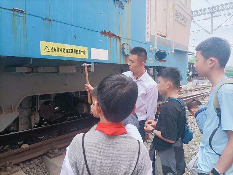 电力机车实景体验场,同学们近距离接触韶山4型电力机车,探究机车的构造及工作原理,系统认知轨道交通运行规律与电能传输技术要义,在理论与实践的交汇中深化对轨道交通科技体系的理解。