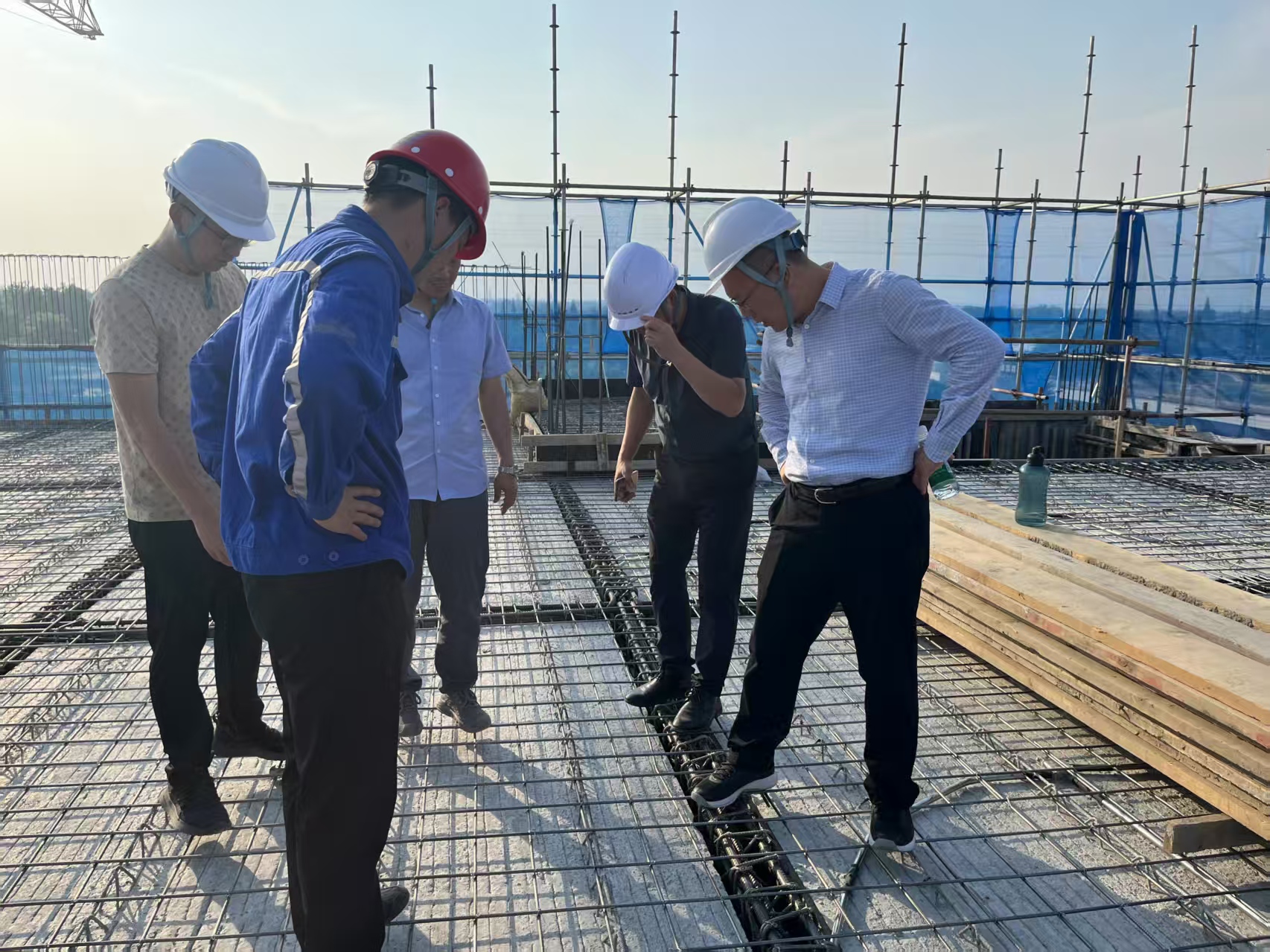 党委书记贺兆轩对项目团队“5天一层”的施工效率以及“百日攻坚零事故”的安全管理成果给予高度肯定,并对后续工作提出明确要求。他强调,项目团队要以“毫米精度”严格把控二次结构施工、装饰装修等关键环节;同步制定暴雨、酷暑等极端天气的应对预案;通过“晨午晚”三级巡查机制,全方位确保工程品质。