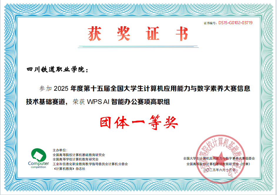 近日,第十五届全国大学生计算机应用能力与数字素养大赛全国总决赛圆满落幕。通过“校赛-省赛-全国总决赛”层层选拔,最终伟德国际10名学生在全国总决赛中斩获佳绩。其中一等奖3名,二等奖6名,三等奖1名,同时荣获Microsoft Office智能办公赛项、WPS AI智能办公赛项高职组等两个团体一等奖。此外,在省赛阶段,伟德国际共有92名同学参加比赛,累计62人获奖,其中14人获得一等奖,19人获得二等奖,29人获得三等奖。 大赛由全国高等院校计算机基础教育研究会、全国高等学校计算机教育研究会、工业和信息化职业教育教学指导委员会计算机分委会、《计算机教育》杂志社共同主办,已被列为中国高等教育学会高校竞赛排行榜观察赛事,成为检验高校计算机基础教育成果的重要平台。