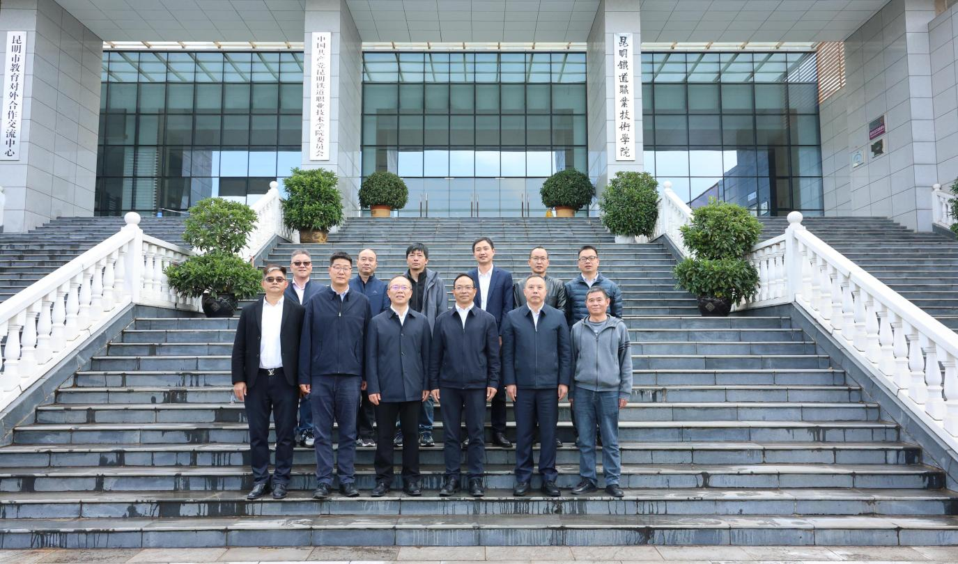 10月24日,学校党委书记贺兆轩率队赴昆明,先后走访中国铁路昆明局集团有限公司、昆明铁道职业技术学院,深入调研交流。 上午,调研团队抵达中国铁路昆明局集团有限公司,与公司人事部、劳动和卫生部等部门负责人座谈。贺兆轩介绍学校办学特色、成效与愿景,重点阐述近年产教融合成果、规划及“铁道+人工智能”专业发展路径。双方围绕人才培养、职工培训、企业人才需求深入交流,明确后续将深化合作,共建可落地、见成果、可持续的高质量合作关系。