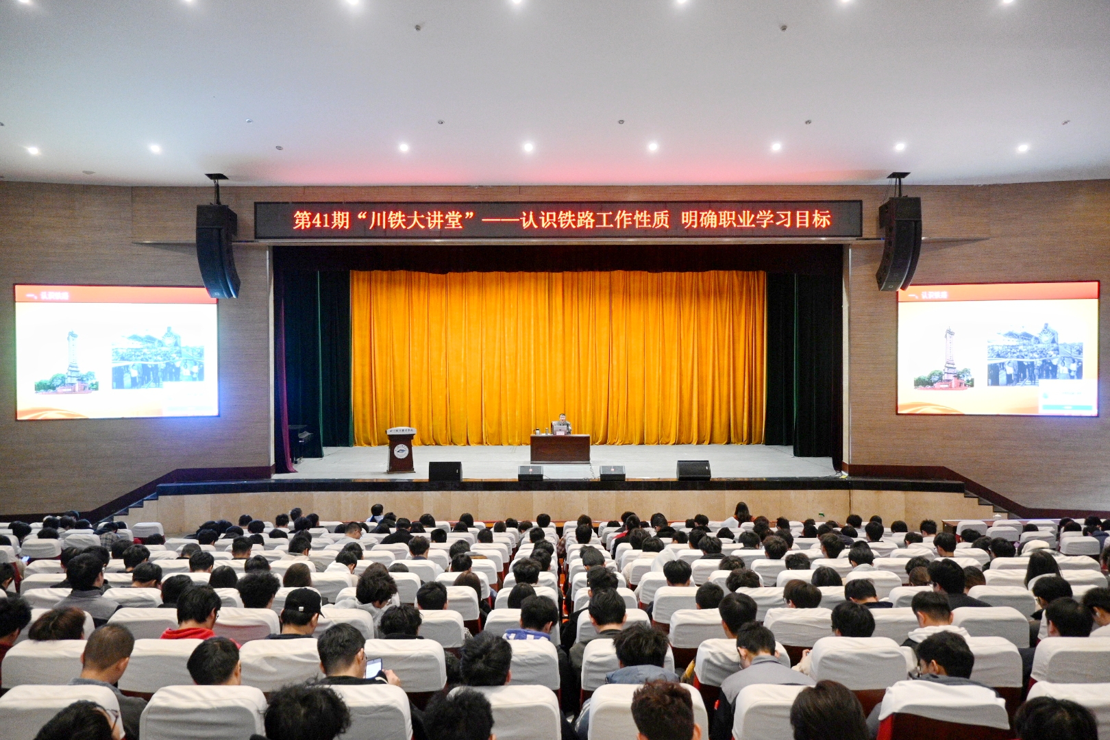 拥有35年铁路行业从业经验的唐光平以成都人民公园内的“辛亥秋保路死事纪念碑”为切入点,深情讲述四川保路运动的历史背景及其在中国近代史上的重要意义,生动诠释了铁路与地方发展、民族命运之间的深刻联系,引导同学们从厚重的地域历史中感悟铁路行业的初心使命与责任担当。 唐光平结合自身丰富的工作经历,系统梳理了铁路行业的组织架构、岗位设置与发展趋势,深入阐释了“安全第一、责任至上”这一铁路行业的核心价值理念。他通过一个个真实鲜活的工作案例,讲述铁路人坚守岗位、攻坚克难的感人故事,展现铁路系统优良传统和职业精神的代代传承,激发同学们的责任意识、协作精神与职业认同感。 针对新生普遍存在的学业与职业规划困惑,唐光平建议大家立足国家铁路发展战略和行业实际需求,科学制定个人成长路径,聚焦专业核心能力,夯实理论基础,强化实践技能,努力成长为新时代高素质铁路技术技能人才。 整场讲座既有历史纵深,又有现实关照;既有理论高度,又具实践温度。唐光平以深厚的行业积淀、真挚的情感表达和生动的叙事方式,让师生在回望铁路峥嵘岁月的同时,更加清晰地把握行业发展的当下与未来。
