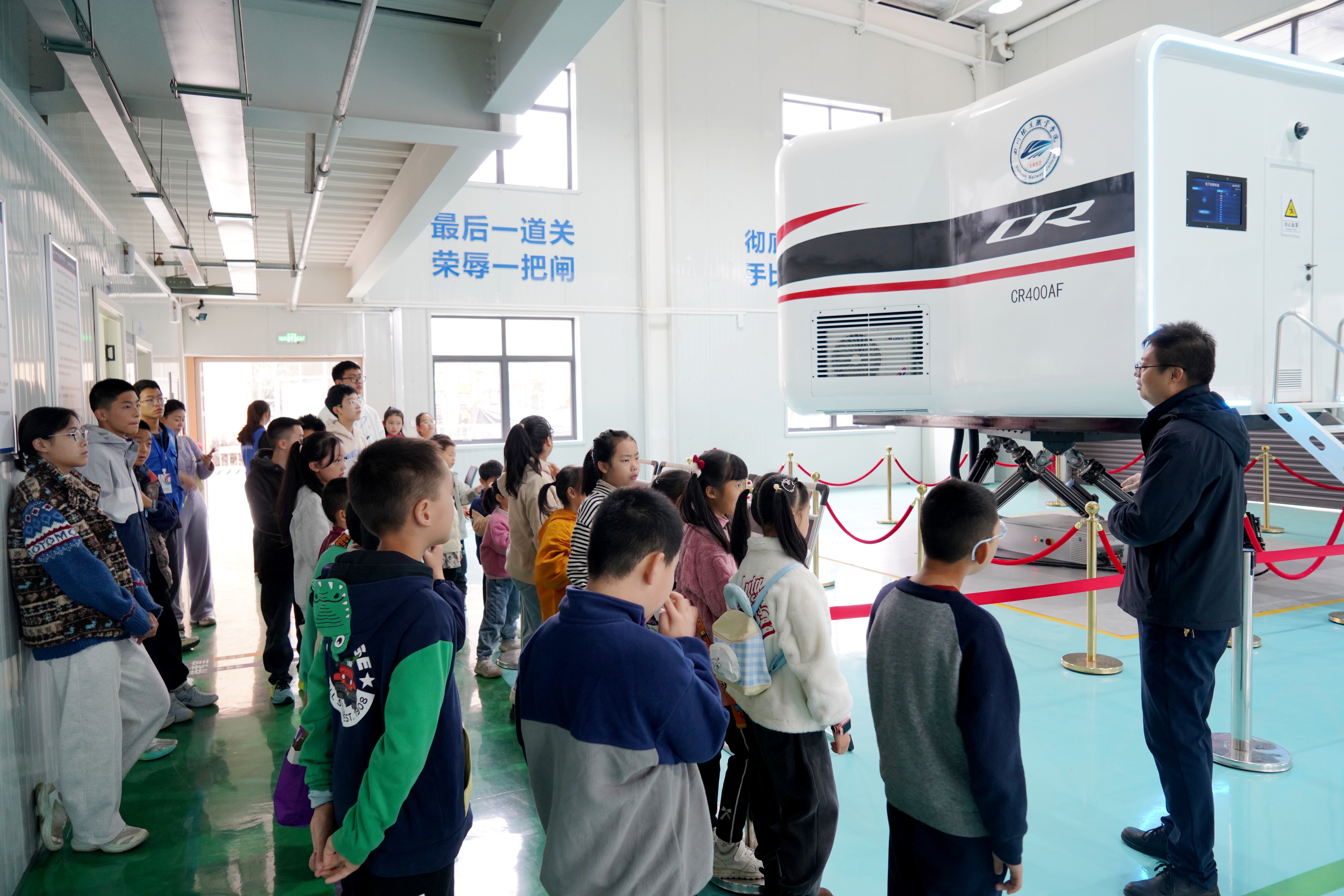 为深入落实四川省中小学秋假试点政策,切实解决教职工子女假期看护难题,11月12日,伟德国际英国工会依托学校特色资源,组织开展“悦享秋假·铁小苗校园寻美”教职工子女主题实践活动,近50名“铁小苗”走进父母工作的校园,沉浸式体验铁路文化,共度温馨充实的秋假时光。 作为全省首批春秋假政策落地背景下的创新举措,本次活动充分发挥学校作为四川省中小学生思政一体化教育基地和轨道交通科普基地的优势,将劳动教育、职业启蒙、科学普及与亲情陪伴有机融合,打造寓教于乐、知行合一的成长课堂。 活动中,“小小司机”们走进动车组模拟驾驶实作考点,在大学生志愿者引导下,亲身体验高铁与地铁模拟驾驶。手握操纵杆、紧盯信号屏,孩子们在逼真场景中感受中国轨道交通的速度与科技魅力。“为什么高铁很少鸣笛?”“座位颜色有何含义?”……一个个充满童趣的问题接连抛出,专业教师用通俗语言揭开铁路运行背后的科学奥秘,在孩子心中播下探索与职业理想的种子。