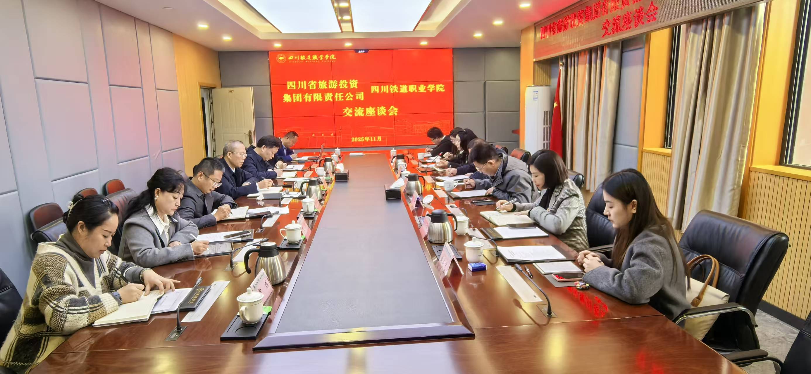11月14日,四川省旅游投资集团有限责任公司(以下简称 “四川旅投集团”)副总经理伍斌率队来校调研。学校党委书记贺兆轩、副校长黄恩兴出席座谈会,双方聚焦“铁文旅”融合发展进行座谈交流。