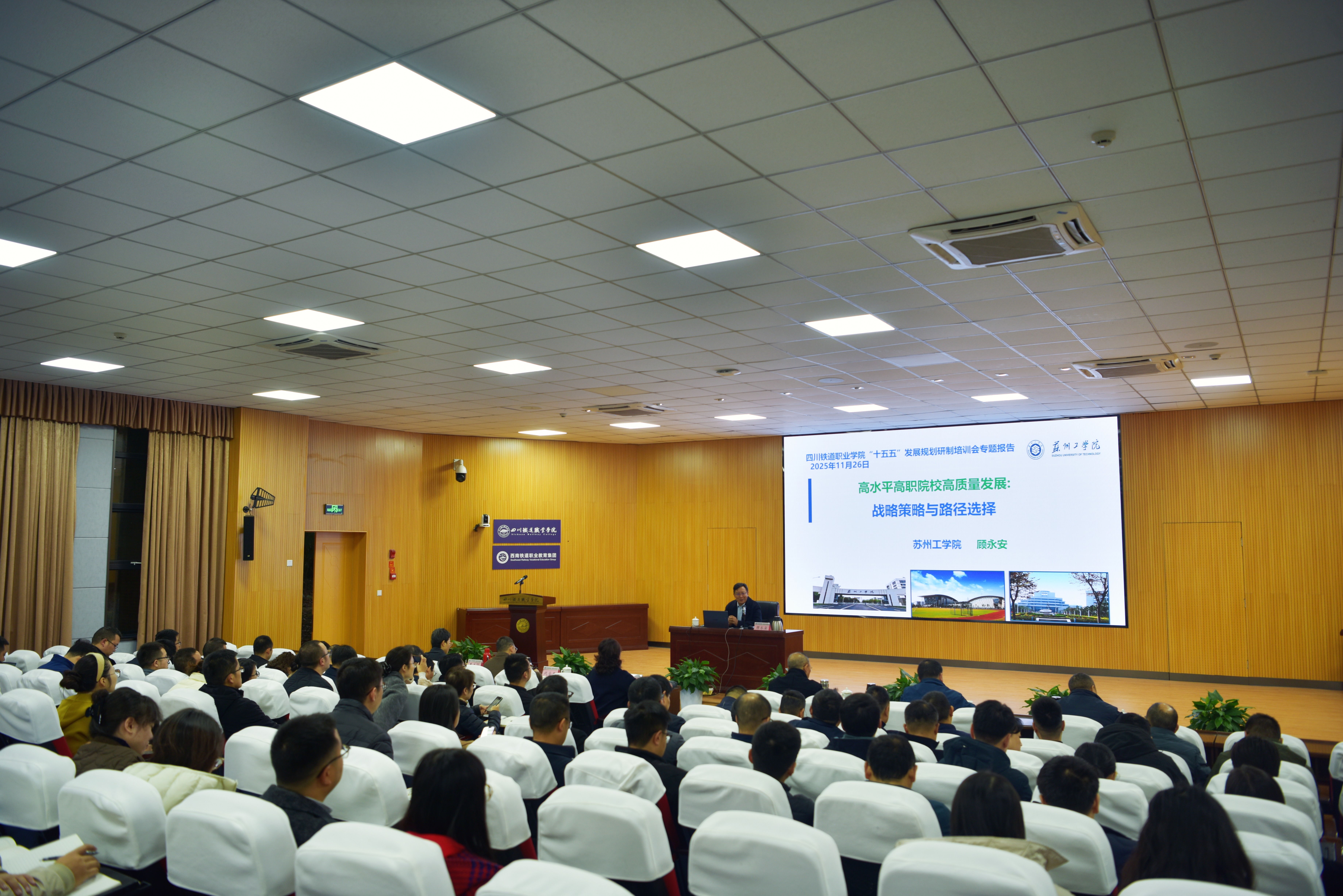 赖芳指出“十五五”规划是关乎学校未来五年乃至更长时期办学定位、愿景目标、发展方向、道路选择的关键之举,对于学校把握新机遇、应对新挑战、实现新跨越具有至关重要的意义。她强调,要深化认识,提高站位,将规划编制置于国家职教改革和区域发展大局中谋划;要消化吸收,学以致用,将讲座精髓转化为具体编制思路和方法;要深入调研,科学论证,确保规划目标科学、举措可行;要凝聚智慧,协同推进,广泛听取意见,汇聚全校合力;要对标先进,突出特色,紧密结合学校实际和铁路行业背景,谋划具有川铁职院辨识度的发展路径。 全体中层干部、教研室主任、高层次人才参加培训会。